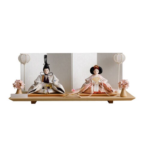 雛人形 おしゃれ モダン 親王飾り インテリア お雛様 雛 高級 PREFER CLASSIC ひな人形 [檜台 白屏風 平飾り お道具付 和桜 三方桜 選べる灯り2種 油灯 雪洞 人形小サイズ 選べる金襴衣裳4種類 星欄 羅未 桜央 絃凪] 【星欄 雪洞】