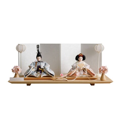 雛人形 おしゃれ モダン 親王飾り インテリア お雛様 雛 高級 PREFER CLASSIC ひな人形 [檜台 白屏風 平飾り お道具付 和桜 三方桜 選べる灯り2種 油灯 雪洞 人形小サイズ 選べる金襴衣裳4種類 星欄 羅未 桜央 絃凪] 【桜央 雪洞】