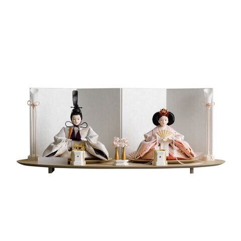 雛人形 おしゃれ モダン 親王飾り インテリア お雛様 雛 高級 PREFER CLASSIC ひな人形 [丸型台 白屏風 平飾り お道具付 貝桶三方 選べる雪洞2種類 油灯 雪洞 人形小サイズ 選べる金襴衣裳3種類 星欄 羅未 桜央] 【星欄 油灯】