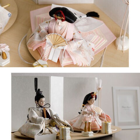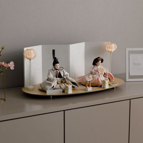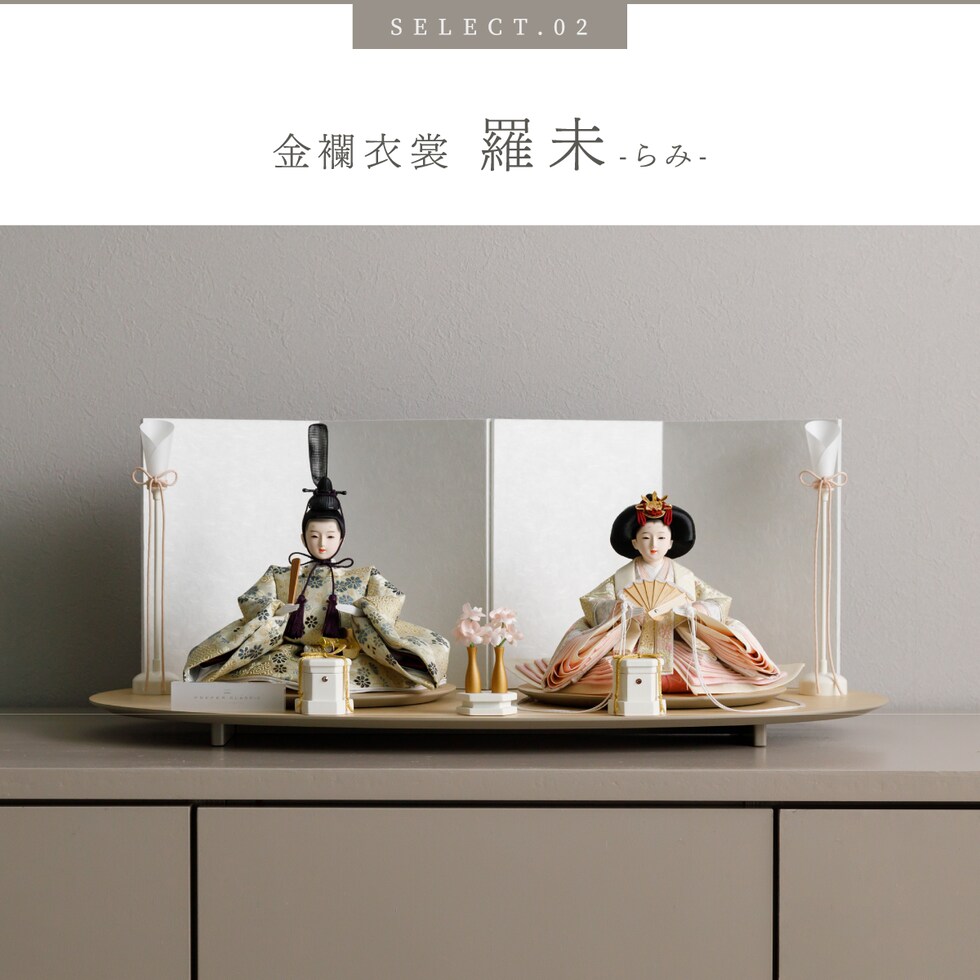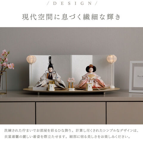 雛人形 おしゃれ モダン 親王飾り インテリア お雛様 雛 高級 PREFER CLASSIC ひな人形 [丸型台 白屏風 平飾り お道具付 貝桶三方 選べる雪洞2種類 油灯 雪洞 人形小サイズ 選べる金襴衣裳3種類 星欄 羅未 桜央] 【羅未 雪洞】