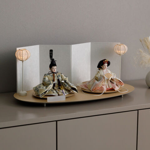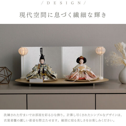 雛人形 おしゃれ モダン 親王飾り インテリア お雛様 雛 高級 PREFER CLASSIC ひな人形 [丸型台 白屏風 平飾り 雪洞 人形小サイズ 選べる金襴衣裳3種類 星欄 羅未 桜央] 【星欄】