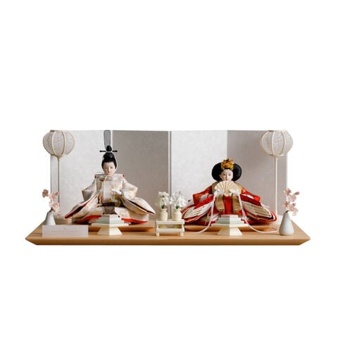 雛人形 おしゃれ モダン 親王飾り インテリア お雛様 雛 高級 PREFER CLASSIC ひな人形 [檜台 白屏風 平飾り お道具付 油灯 貝桶三方 白梅 人形極小サイズ 選べる正絹衣裳3種類 凰妃 桃帯 深紗] 【凰妃】