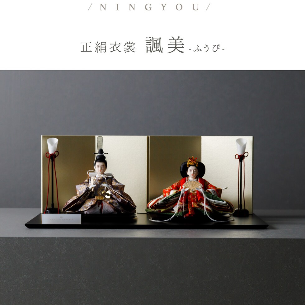 雛人形 おしゃれ モダン 親王飾り インテリア お雛様 雛 高級 PREFER CLASSIC ひな人形 [黒塗台 金屏風 平飾り 油灯 人形極小サイズ 正絹衣裳 諷美]