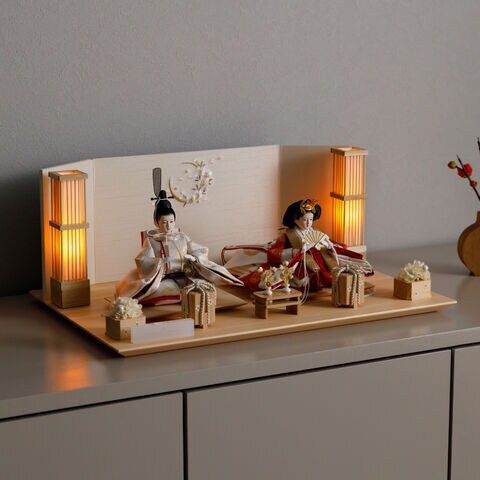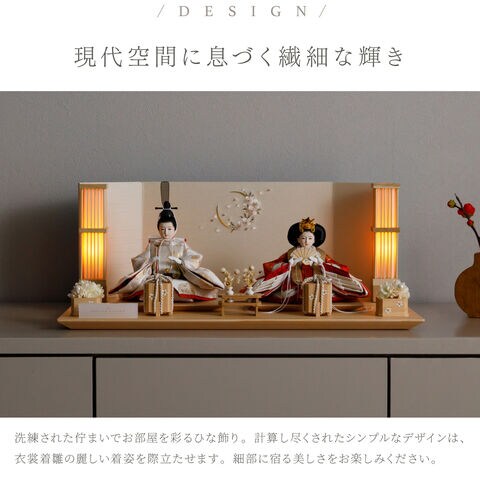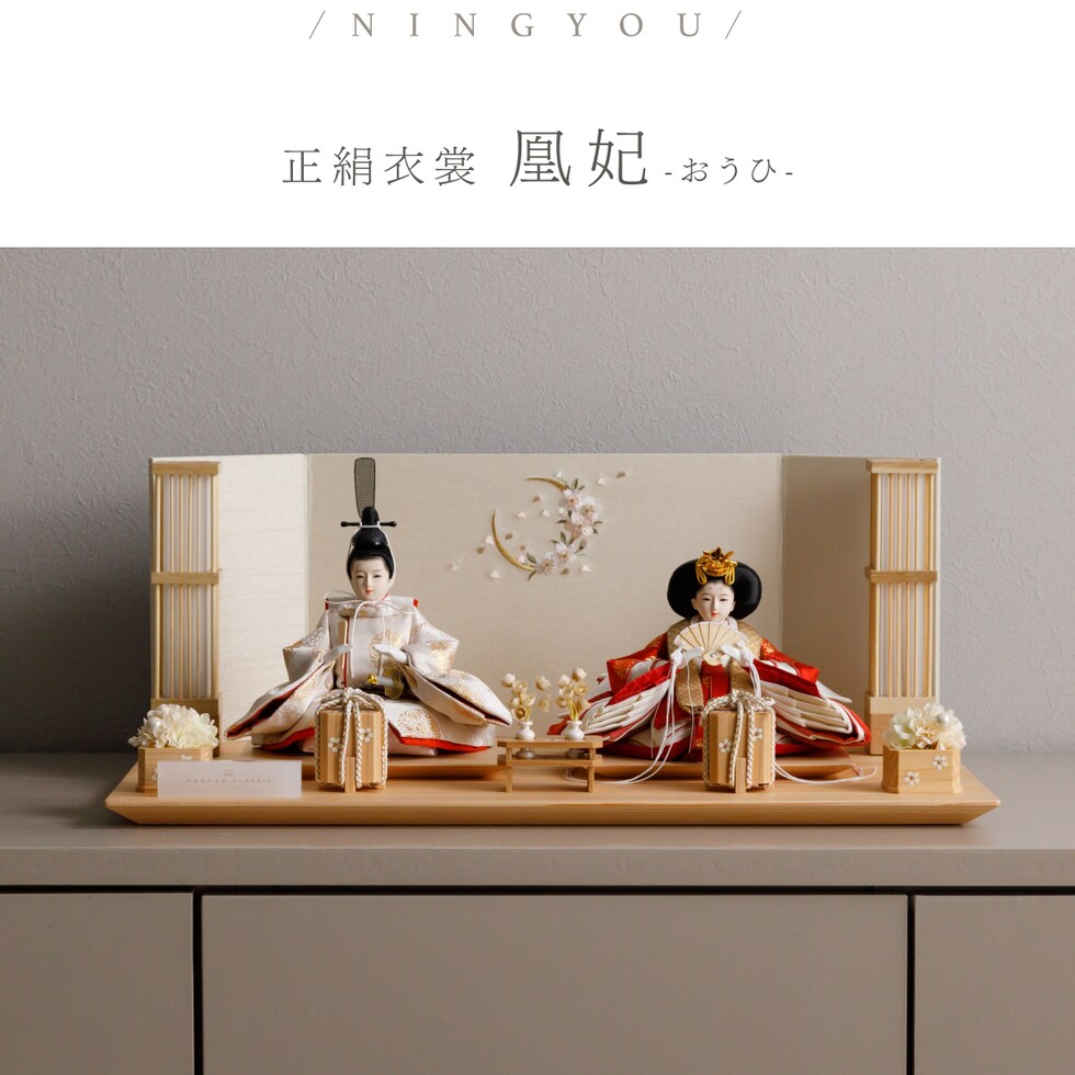 雛人形 おしゃれ モダン 親王飾り インテリア お雛様 雛 高級 PREFER CLASSIC ひな人形 [檜台 桜月刺繍屏風 平飾り お道具付 貝桶花 駿河行灯 人形極小サイズ 正絹衣裳 凰妃]
