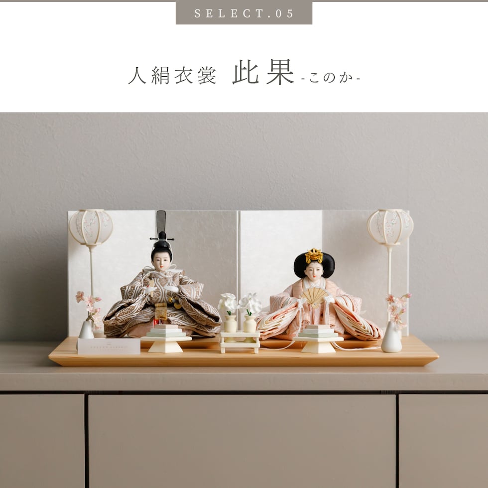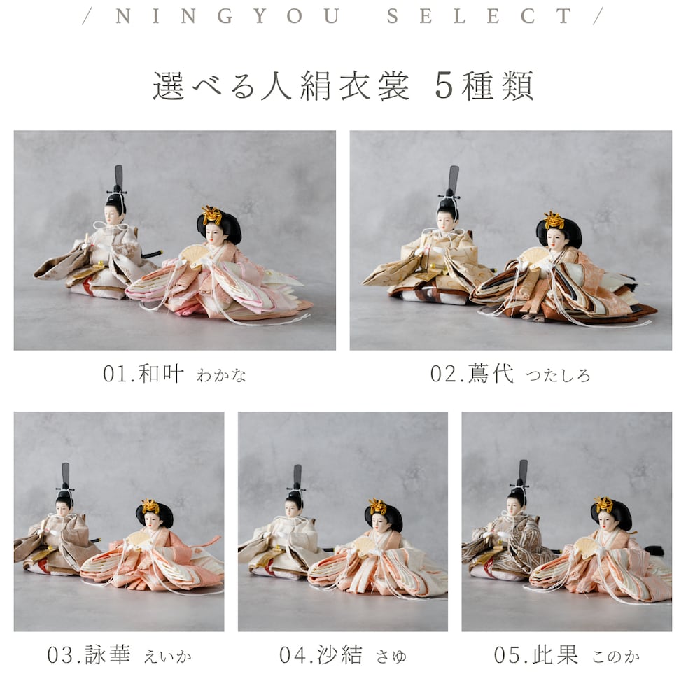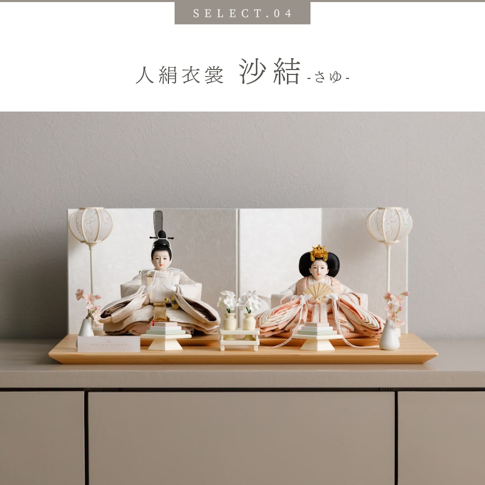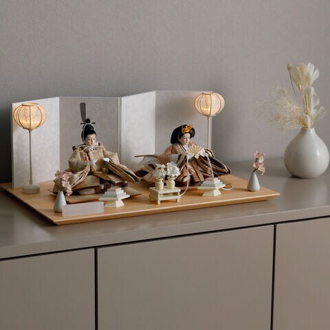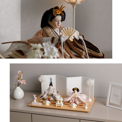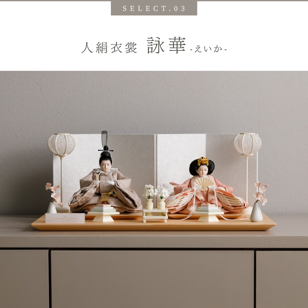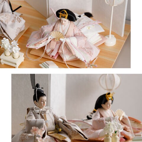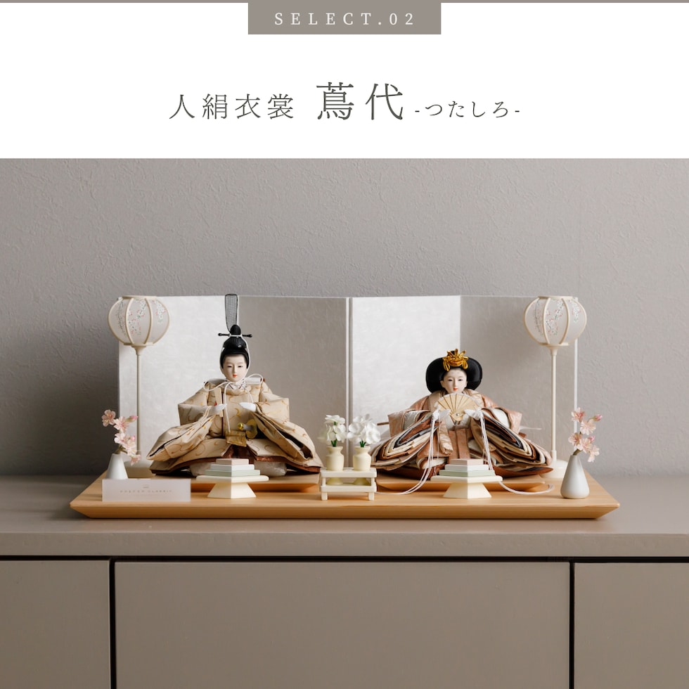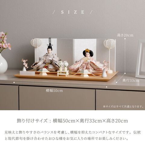 雛人形 おしゃれ モダン 親王飾り インテリア お雛様 雛 高級 PREFER CLASSIC ひな人形 [檜台 白屏風 平飾り お道具付 菱餅三方 雪洞 枝桜ピンク 人形極小サイズ 選べる人絹衣裳5種類 和叶 蔦代 詠華 沙結 此果] 【蔦代】