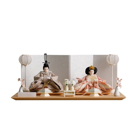 雛人形 おしゃれ モダン 親王飾り インテリア お雛様 雛 高級 PREFER CLASSIC ひな人形 [檜台 白屏風 平飾り お道具付 菱餅三方 雪洞 枝桜ピンク 人形極小サイズ 選べる人絹衣裳5種類 和叶 蔦代 詠華 沙結 此果] 【詠華】