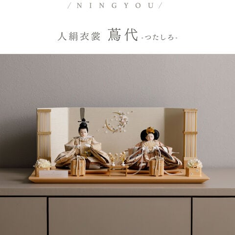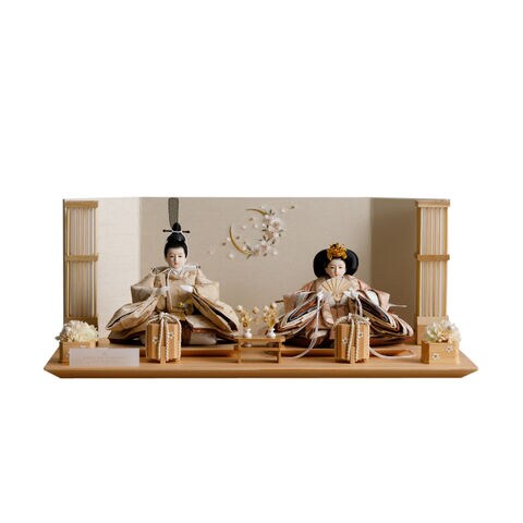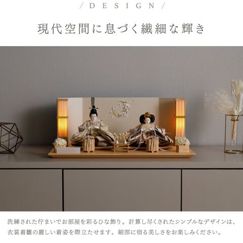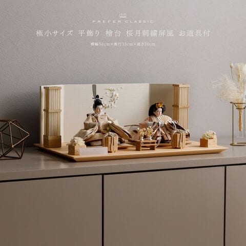 雛人形 おしゃれ モダン 親王飾り インテリア お雛様 雛 高級 PREFER CLASSIC ひな人形 [檜台 桜月刺繍屏風 平飾り お道具付 貝桶花 駿河行灯 人形極小サイズ 人絹衣裳 蔦代]