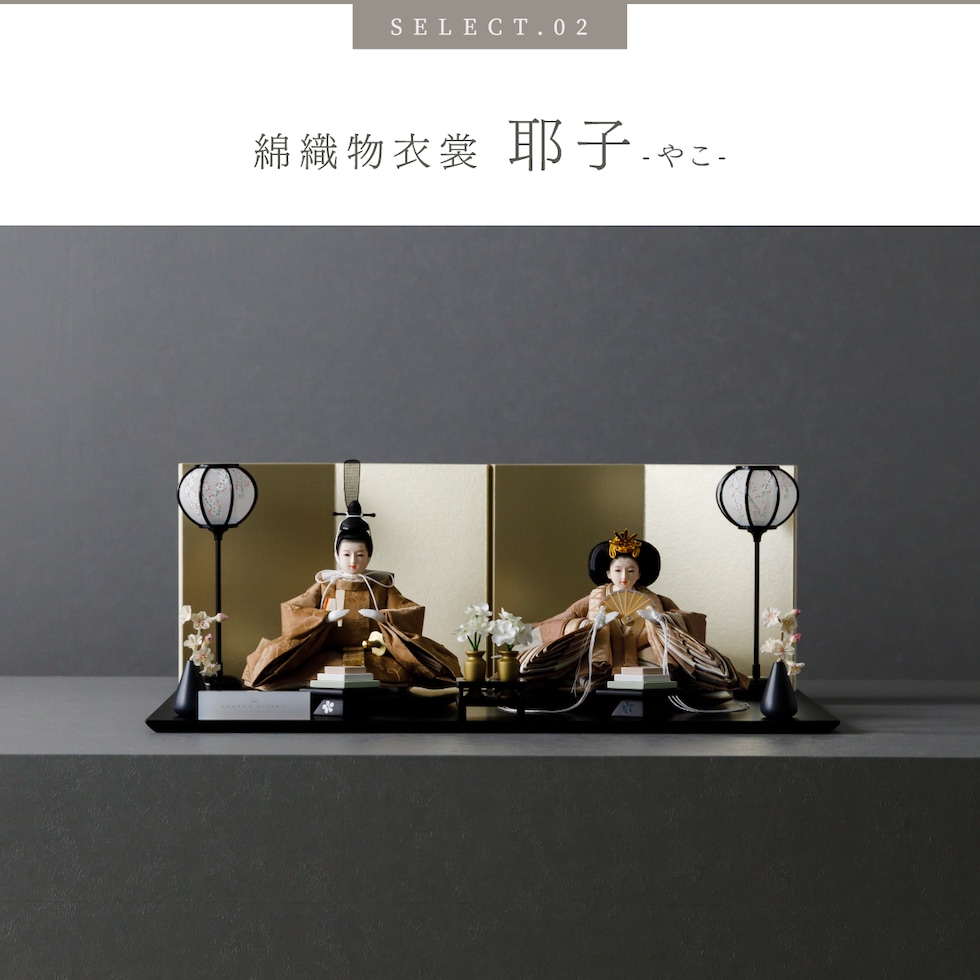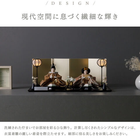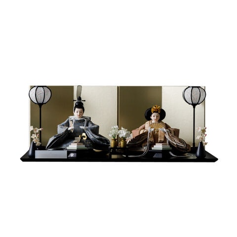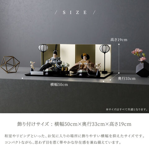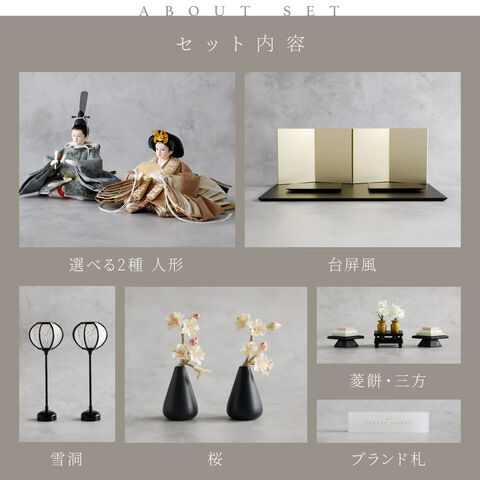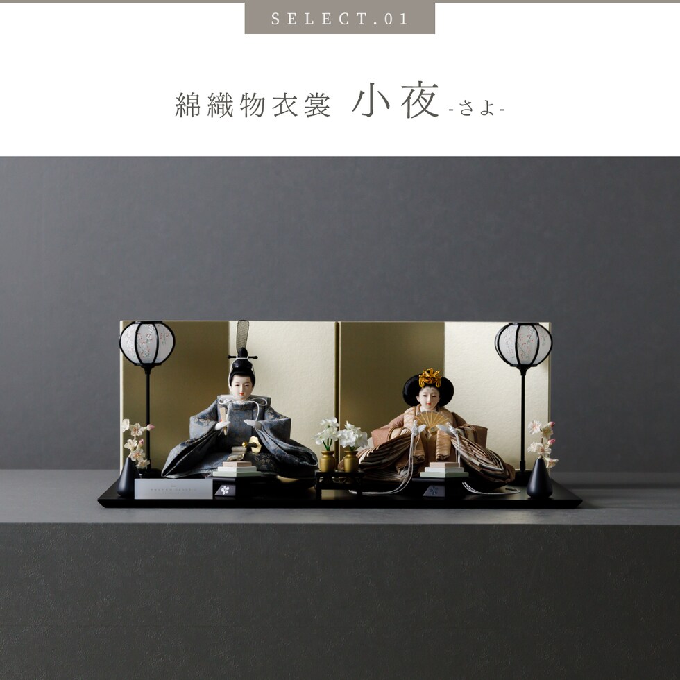 雛人形 おしゃれ モダン 親王飾り インテリア お雛様 雛 高級 PREFER CLASSIC ひな人形 [黒塗台 金屏風 平飾り お道具付 菱餅三方 雪洞 枝桜白 人形極小サイズ 選べる綿織物衣裳2種類 小夜 耶子] 【小夜】