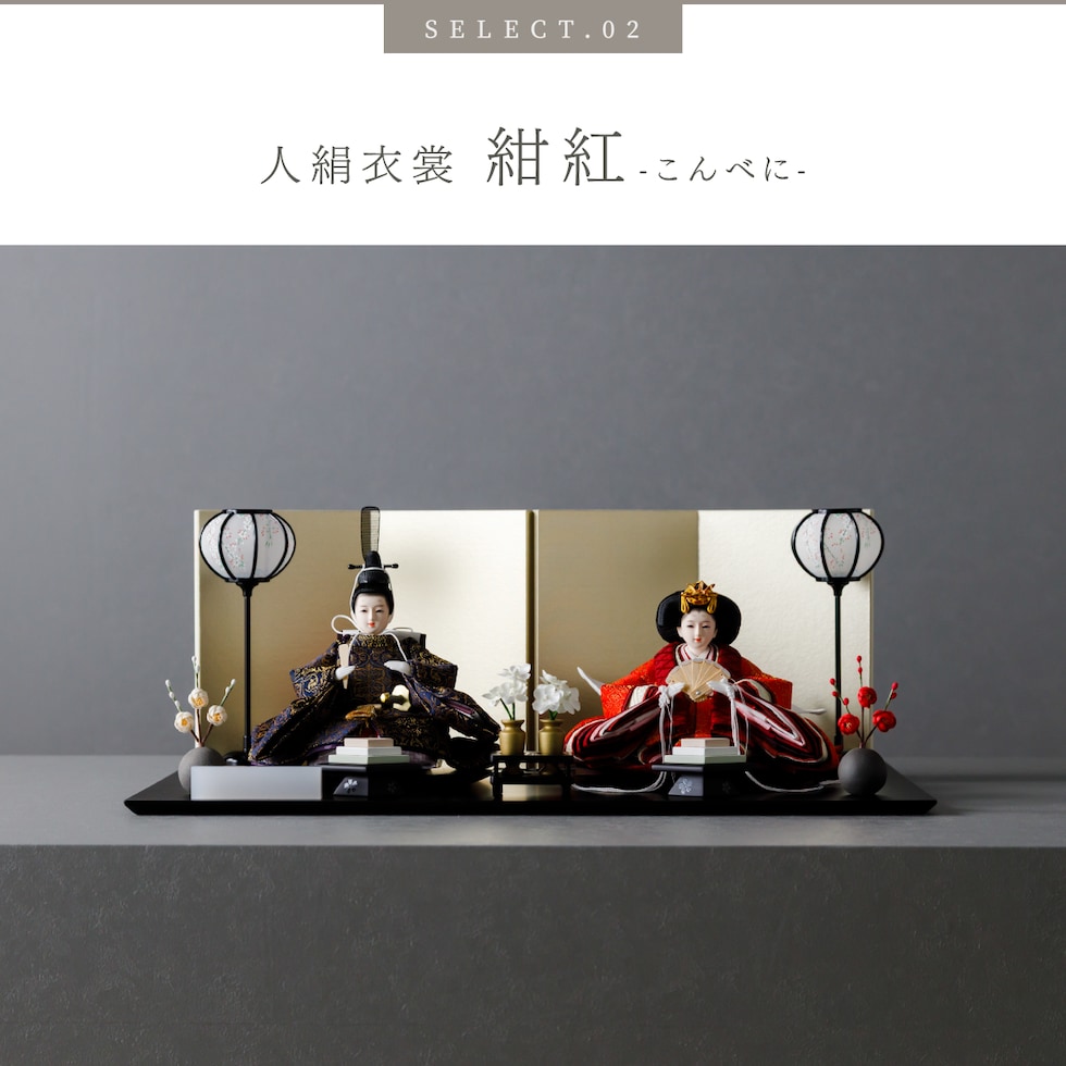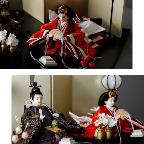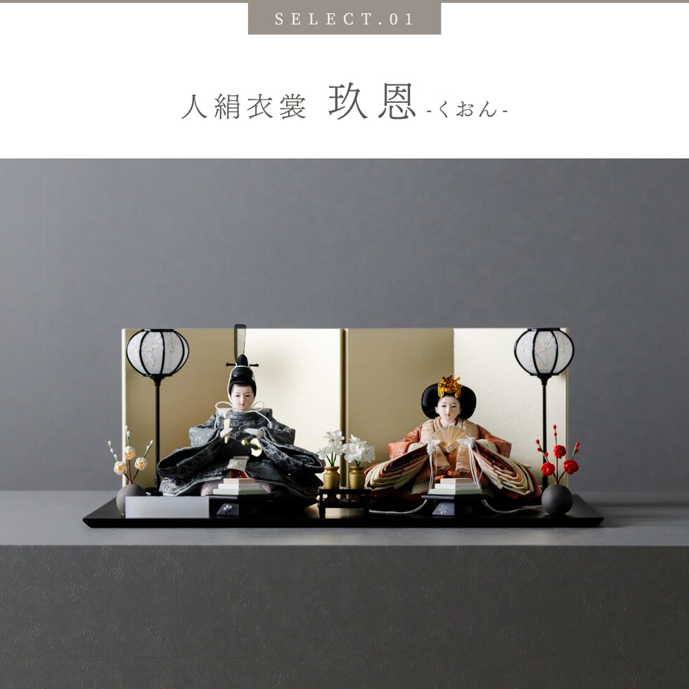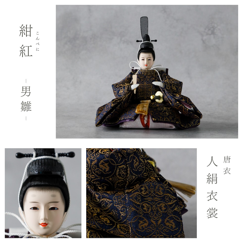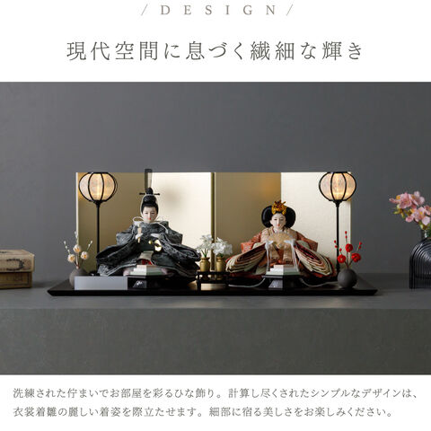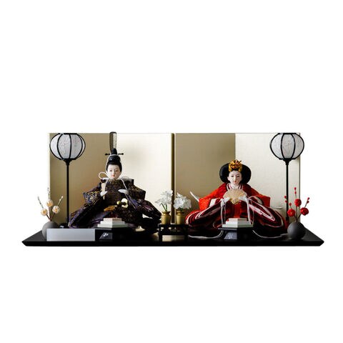 雛人形 おしゃれ モダン 親王飾り インテリア お雛様 雛 高級 PREFER CLASSIC ひな人形 [黒塗台 金屏風 平飾り お道具付 菱餅三方 雪洞 紅白梅 人形極小サイズ 選べる人絹衣裳2種類 玖恩 紺紅] 【紺紅】