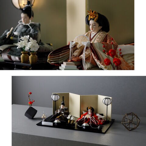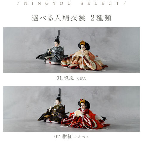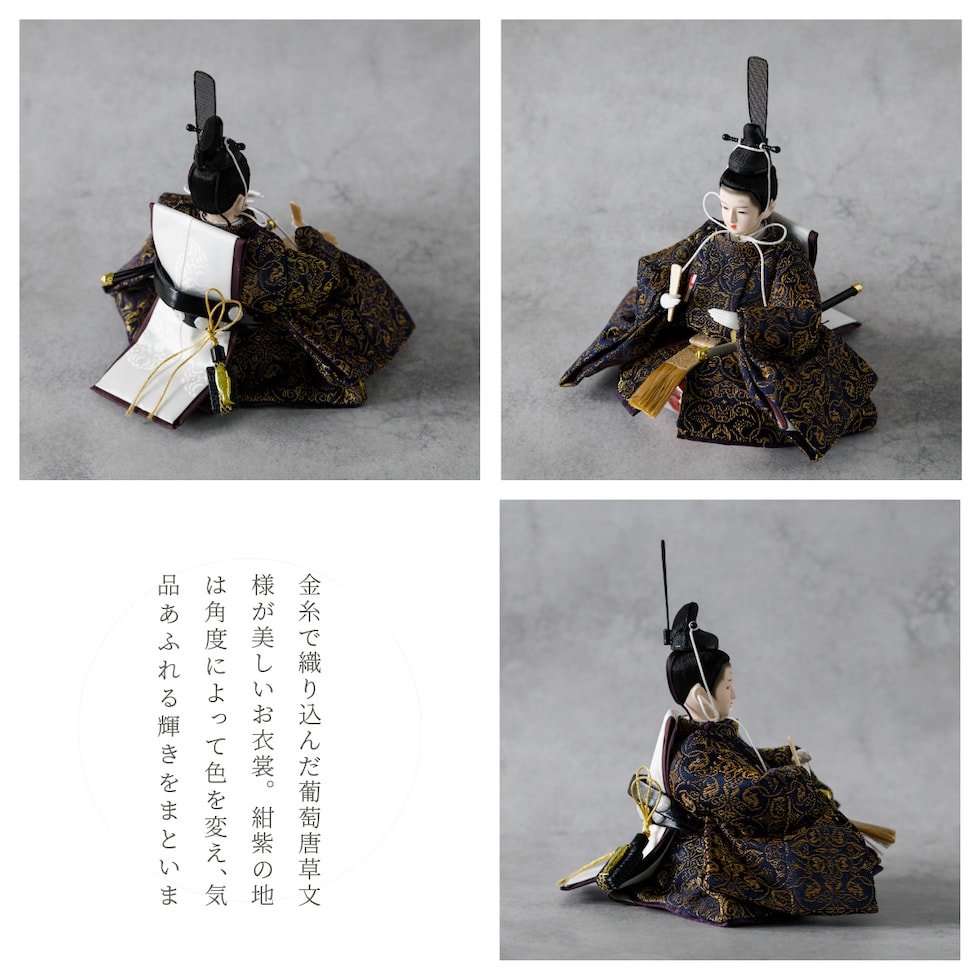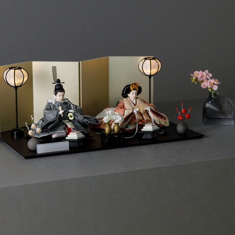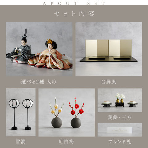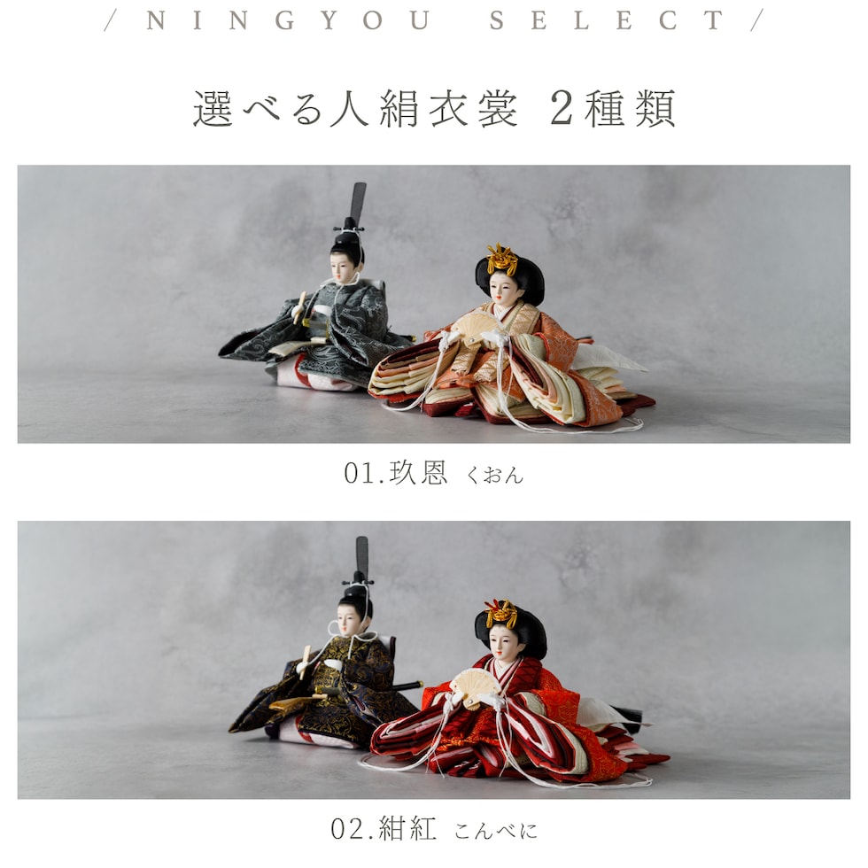 雛人形 おしゃれ モダン 親王飾り インテリア お雛様 雛 高級 PREFER CLASSIC ひな人形 [黒塗台 金屏風 平飾り お道具付 菱餅三方 雪洞 紅白梅 人形極小サイズ 選べる人絹衣裳2種類 玖恩 紺紅] 【紺紅】