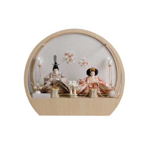 雛人形 おしゃれ モダン 親王飾り インテリア お雛様 雛 高級 PREFER CLASSIC ひな人形 [丸型ケース飾り お道具付 貝桶三方 油灯 白梅 人形極小サイズ 選べる人絹衣裳5種類 和叶 蔦代 詠華 沙結 此果] 【詠華】