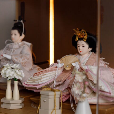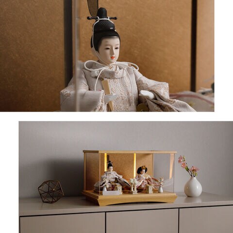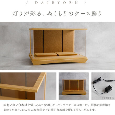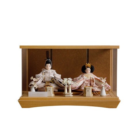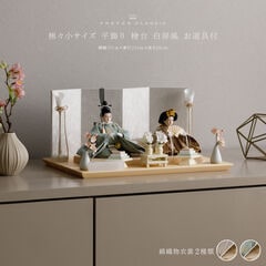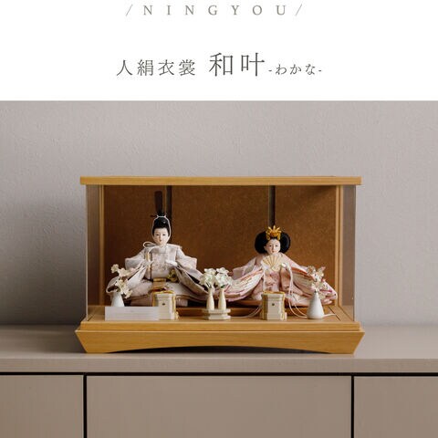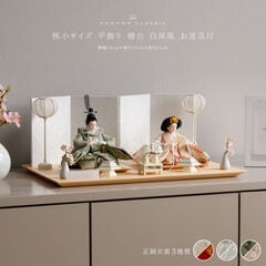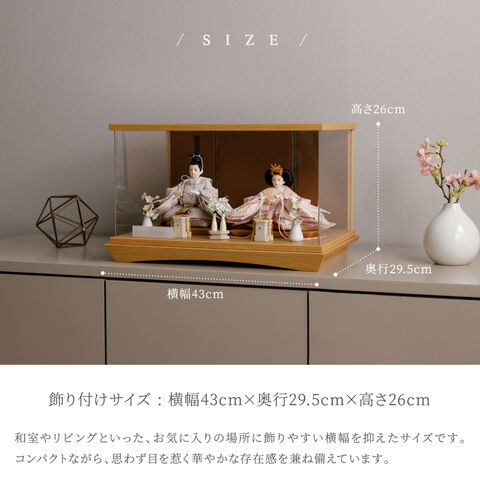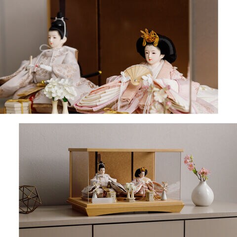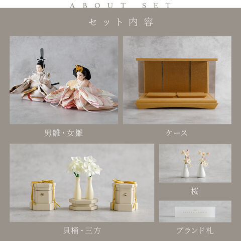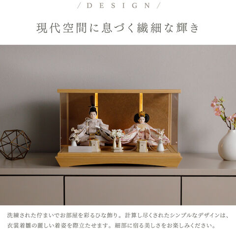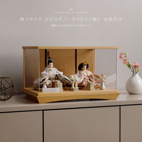 雛人形 おしゃれ モダン 親王飾り インテリア お雛様 雛 高級 PREFER CLASSIC ひな人形 [点灯白木パノラマケース飾り お道具付 貝桶三方 枝桜白 人形極小サイズ 人絹衣裳 和叶]