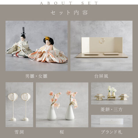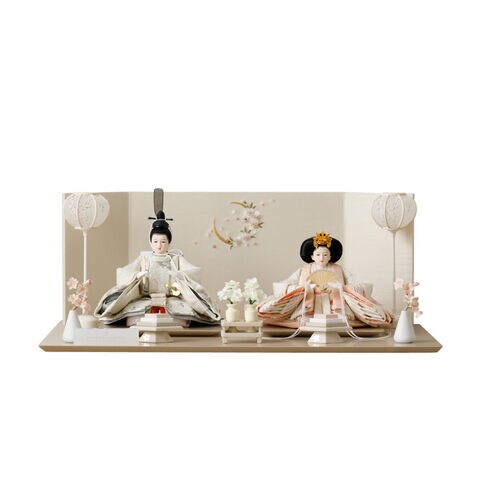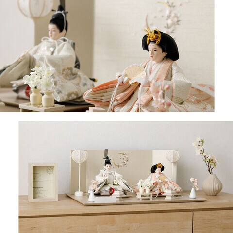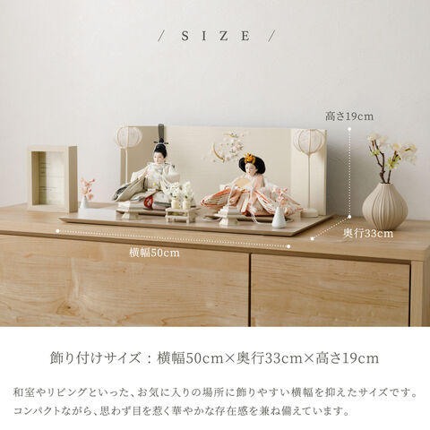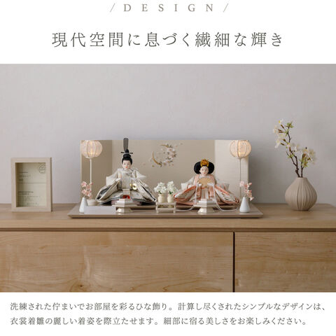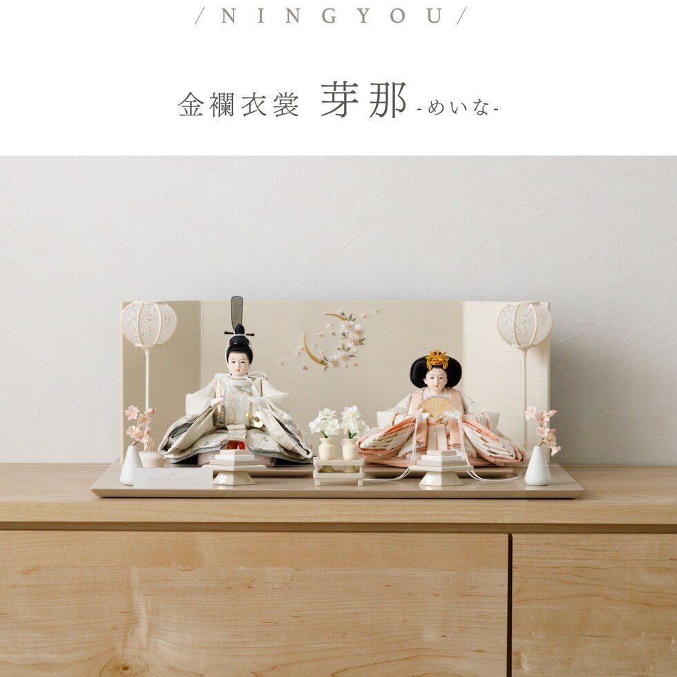 雛人形 おしゃれ モダン 親王飾り インテリア お雛様 雛 高級 PREFER CLASSIC ひな人形 [ベージュ台 桜刺繍屏風 平飾り お道具付 菱餅三方 雪洞 枝桜ピンク 人形極小サイズ 金襴衣裳 芽那]