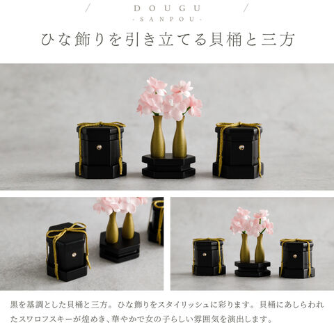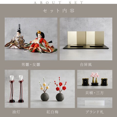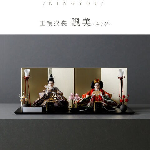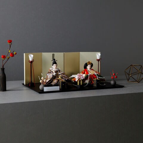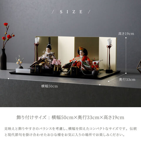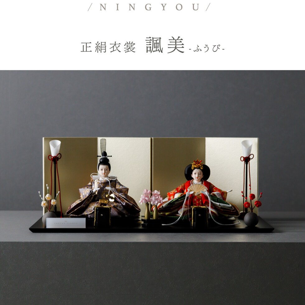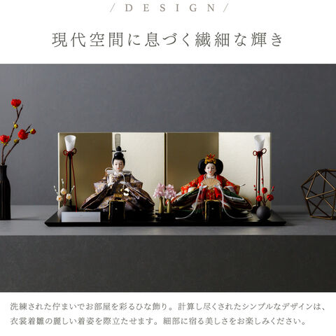 雛人形 おしゃれ モダン 親王飾り インテリア お雛様 雛 高級 PREFER CLASSIC ひな人形 [黒塗台 金屏風 平飾り お道具付 貝桶三方 紅白梅 油灯 人形極小サイズ 正絹衣裳 諷美]