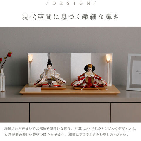 雛人形 おしゃれ モダン 親王飾り インテリア お雛様 雛 高級 PREFER CLASSIC ひな人形 [檜台 白屏風 平飾り 人形極小サイズ 選べる正絹衣裳3種類 凰妃 桃帯 深紗 選べる灯り2種 油灯 雪洞] 【凰妃 油灯】