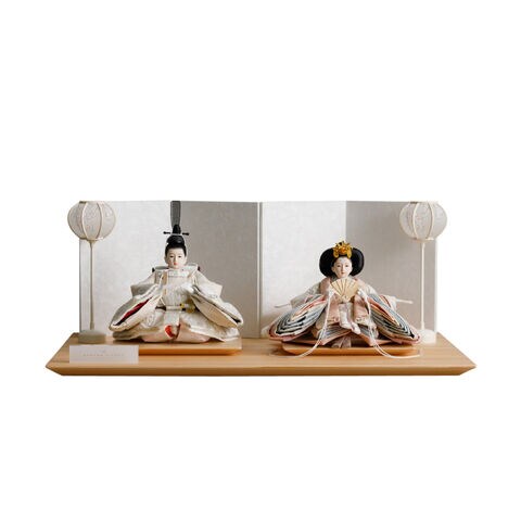 雛人形 おしゃれ モダン 親王飾り インテリア お雛様 雛 高級 PREFER CLASSIC ひな人形 [檜台 白屏風 平飾り 人形極小サイズ 選べる正絹衣裳3種類 凰妃 桃帯 深紗 選べる灯り2種 油灯 雪洞] 【桃帯 雪洞】