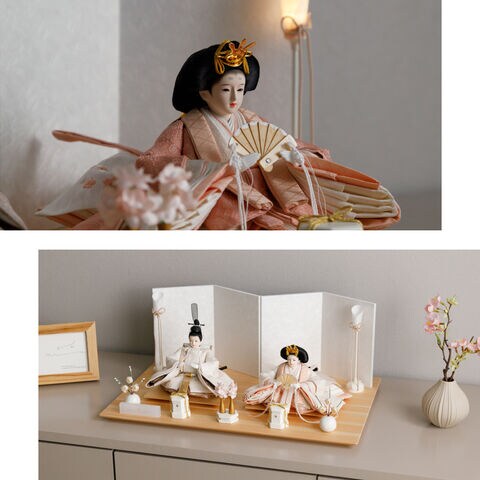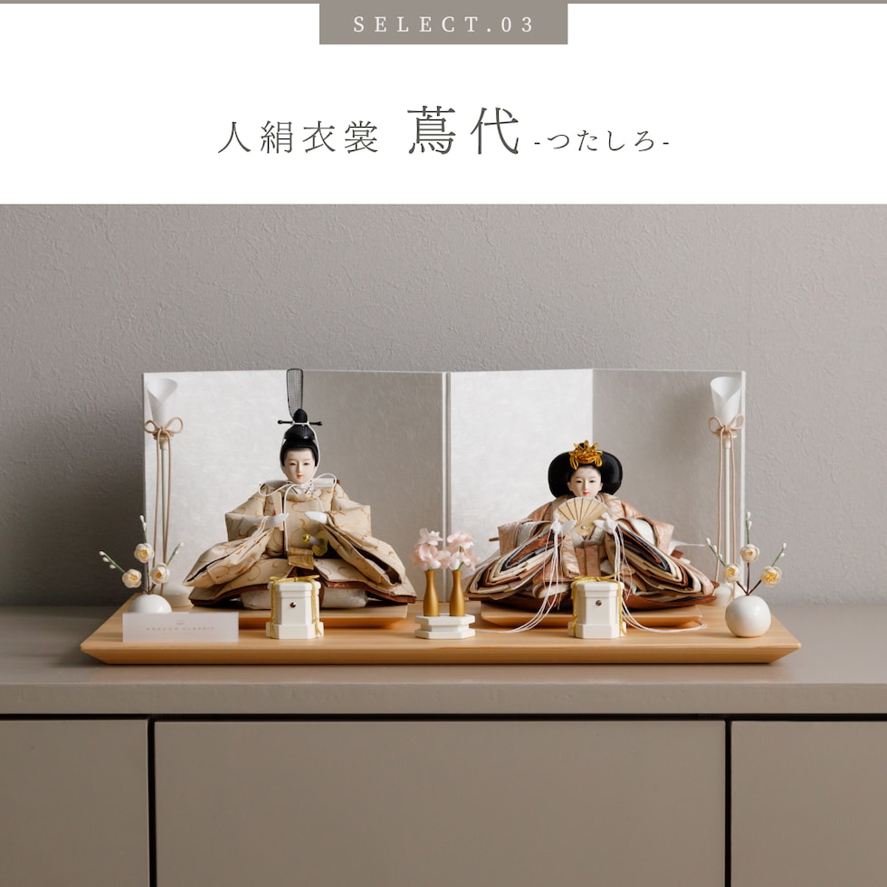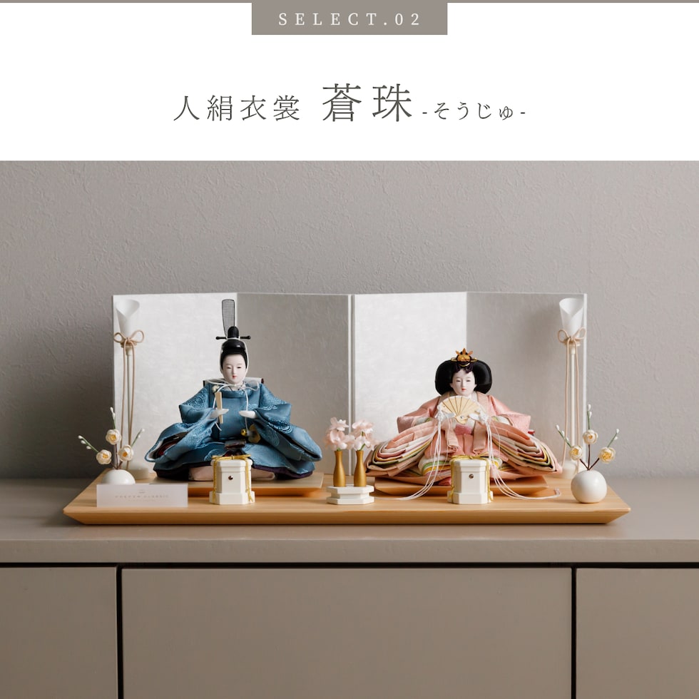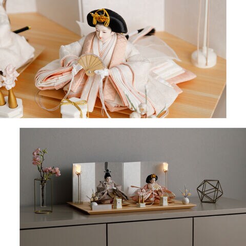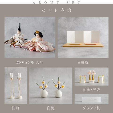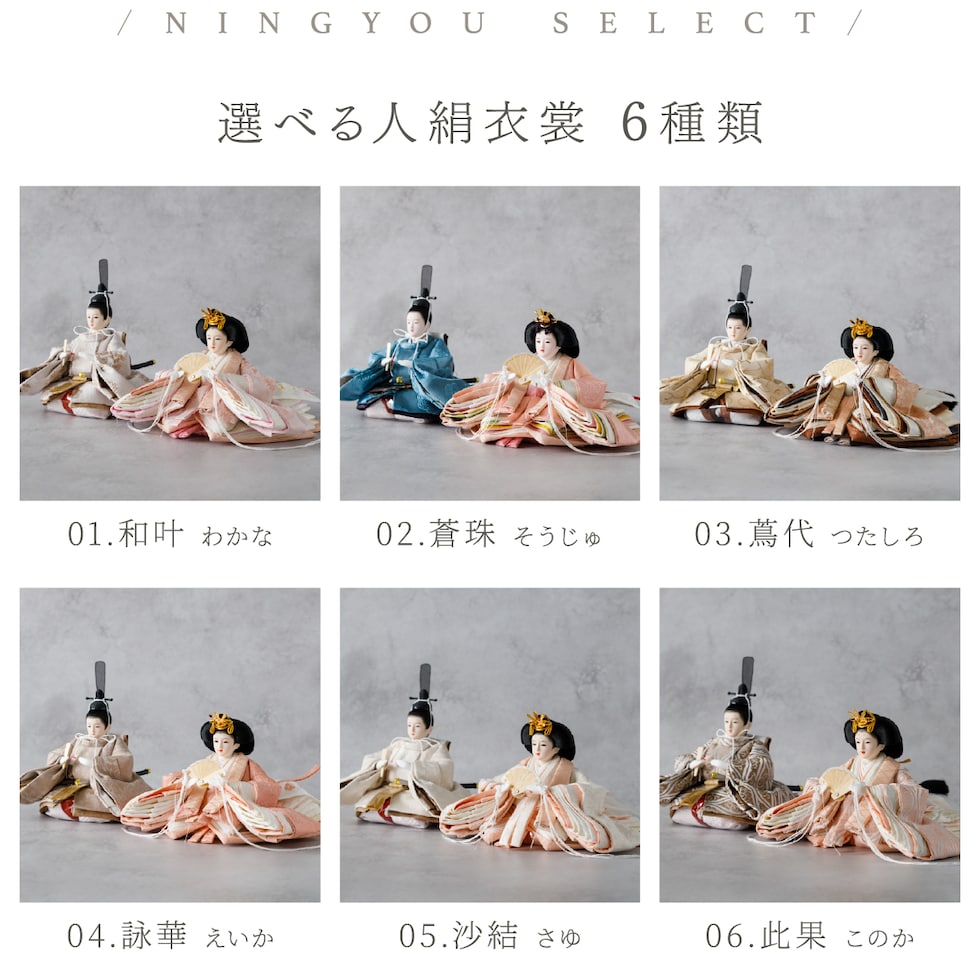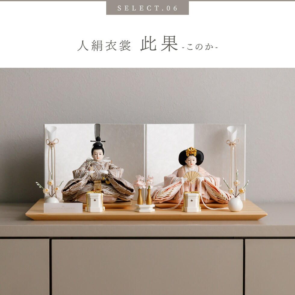 雛人形 おしゃれ モダン 親王飾り インテリア お雛様 雛 高級 PREFER CLASSIC ひな人形 [檜台 白屏風 平飾り お道具付 貝桶三方 油灯 白梅 人形極小サイズ 選べる人絹衣裳6種類 和叶 蒼珠 蔦代 詠華 沙結 此果] 【沙結】
