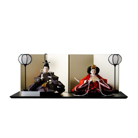 雛人形 おしゃれ モダン 親王飾り インテリア お雛様 雛 高級 PREFER CLASSIC ひな人形 [黒塗台 金屏風 平飾り 人形極小サイズ 選べる人絹衣裳3種類 玖恩 紺紅 蒼珠 選べる灯り2種 油灯 雪洞] 【紺紅 雪洞】