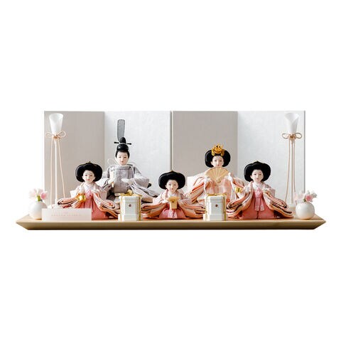 雛人形 おしゃれ モダン 五人飾り 官女 インテリア お雛様 雛 高級 PREFER CLASSIC ひな人形 [檜台 白屏風 平飾り お道具付 貝桶 油灯 選べる道具2種類 桃花 桜橘 人形極々小サイズ 選べる金襴人絹衣裳2種類 郁乃 澄葉] 【郁乃 桃花】