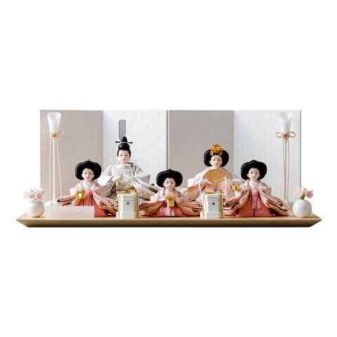 雛人形 おしゃれ モダン 五人飾り 官女 インテリア お雛様 雛 高級 PREFER CLASSIC ひな人形 [檜台 白屏風 平飾り お道具付 貝桶 油灯 選べる道具2種類 桃花 桜橘 人形極々小サイズ 選べる金襴人絹衣裳2種類 郁乃 澄葉] 【澄葉 桃花】