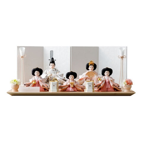 雛人形 おしゃれ モダン 五人飾り 官女 インテリア お雛様 雛 高級 PREFER CLASSIC ひな人形 [檜台 白屏風 平飾り お道具付 貝桶 油灯 選べる道具2種類 桃花 桜橘 人形極々小サイズ 選べる金襴人絹衣裳2種類 郁乃 澄葉] 【澄葉 桜橘】