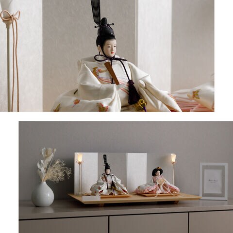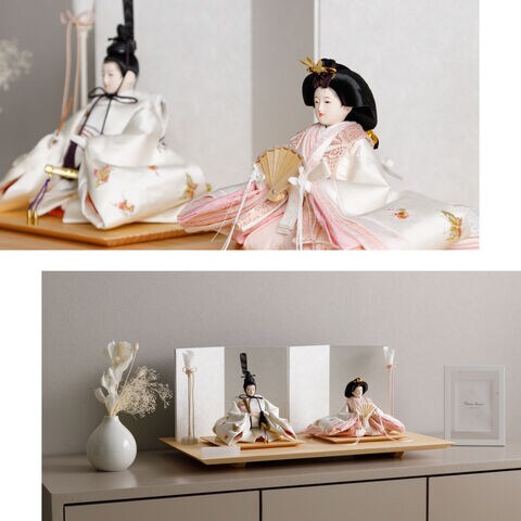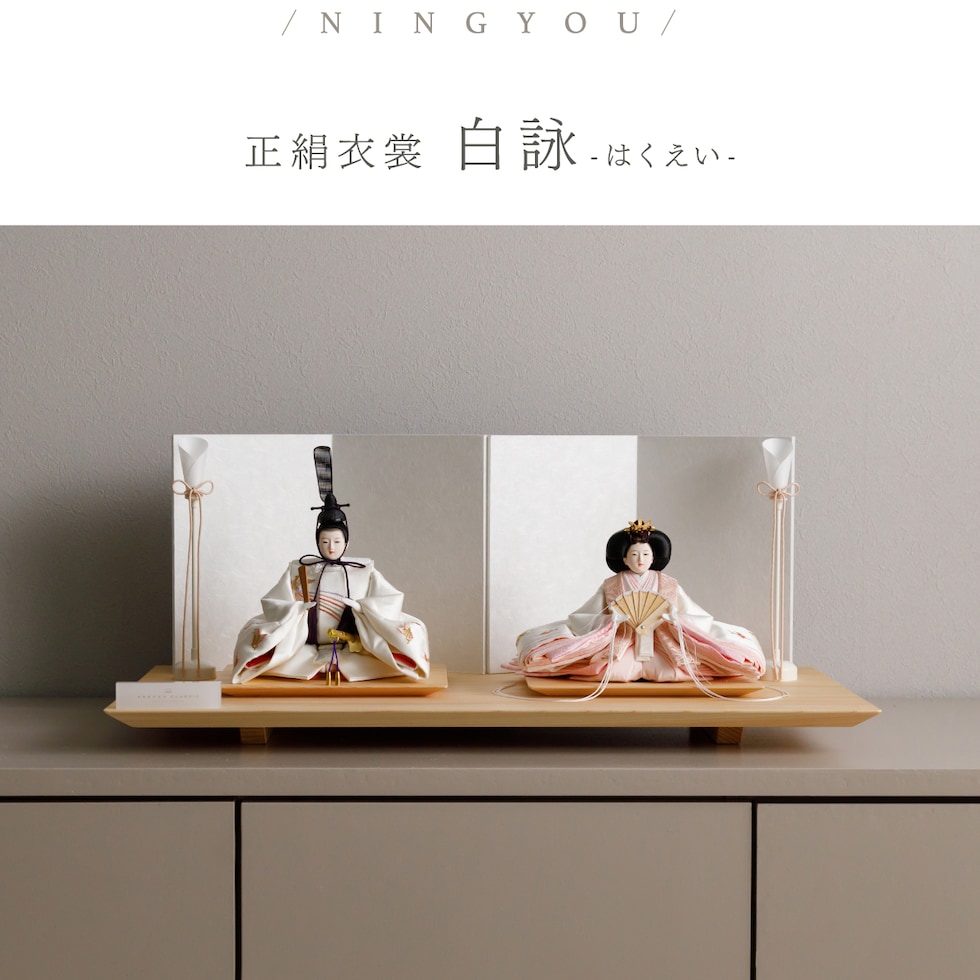 雛人形 おしゃれ モダン 親王飾り インテリア お雛様 雛 高級 PREFER CLASSIC ひな人形 [檜台 白屏風 平飾り 油灯 人形小サイズ 正絹衣裳 白詠]