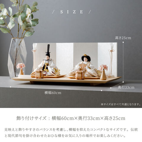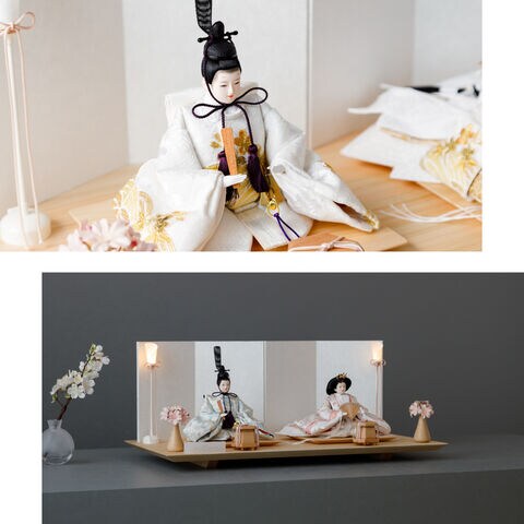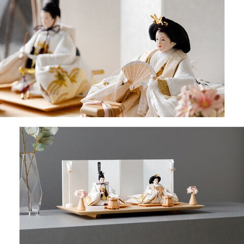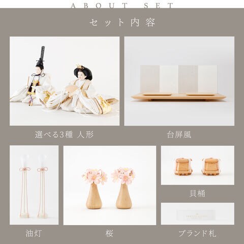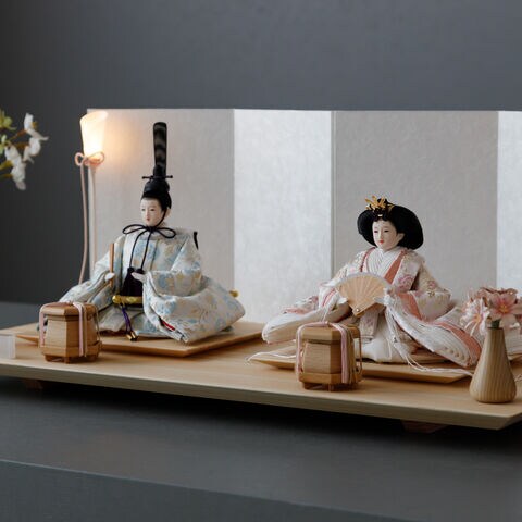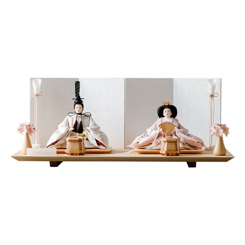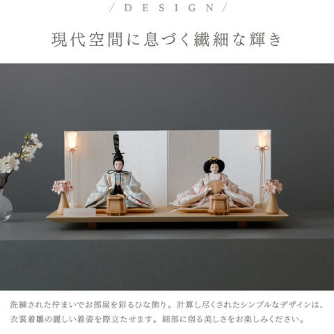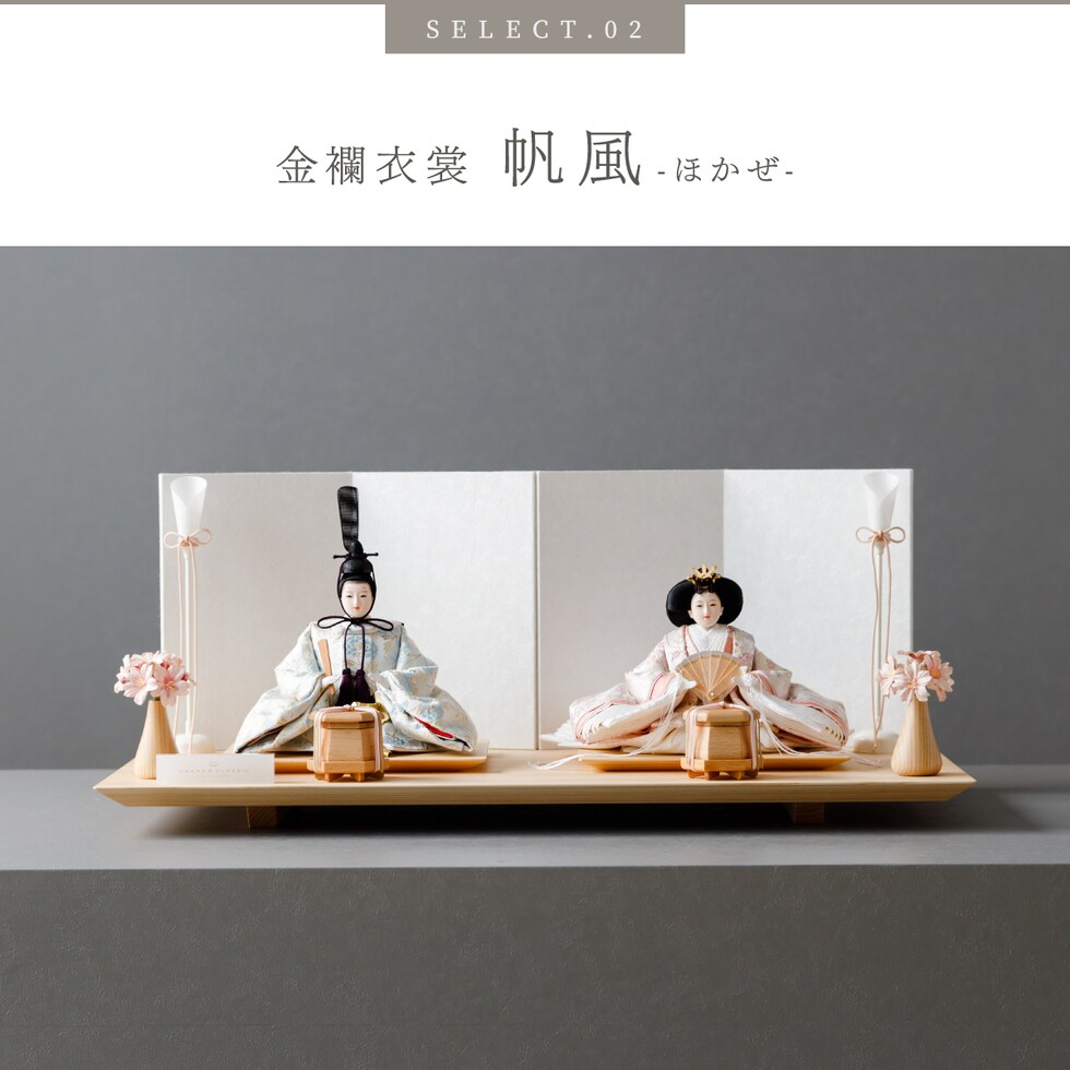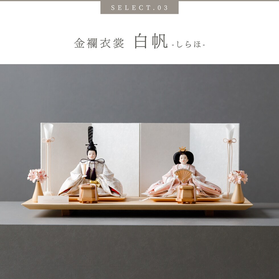 雛人形 おしゃれ モダン 親王飾り インテリア お雛様 雛 高級 PREFER CLASSIC ひな人形 [檜台 白屏風 平飾り お道具付 和桜 貝桶 油灯 人形小サイズ 選べる金襴衣裳3種類 煌咲 帆風 白帆] 【白帆】