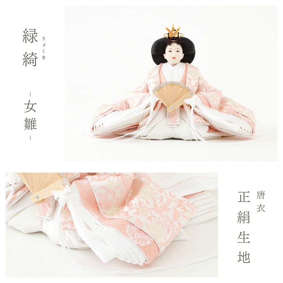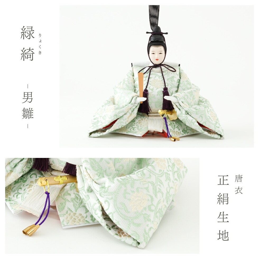 雛人形 おしゃれ 親王飾り モダン インテリア 高級 雛 ひな人形 お雛様 おひなさま PREFER CLASSIC 緑綺(りょくき) 小サイズ 正絹 国産天然檜飾り台 横幅60cm お道具付
