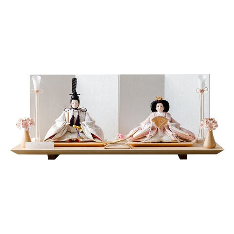 雛人形 おしゃれ モダン 親王飾り インテリア お雛様 雛 高級 PREFER CLASSIC ひな人形 [檜台 白屏風 平飾り お道具付 和桜 三方桜 選べる灯り2種類 油灯 雪洞 人形小サイズ 選べる金襴衣裳3種類 煌咲 帆風 白帆] 【白帆 油灯】