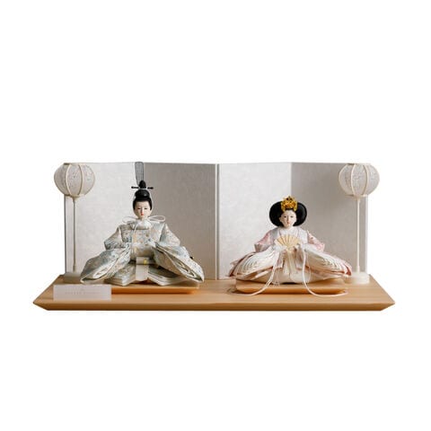 雛人形 おしゃれ モダン 親王飾り インテリア お雛様 雛 高級 PREFER CLASSIC ひな人形 [檜台 白屏風 平飾り 人形極小サイズ 選べる正絹衣裳4種類 碧櫻 采禾 美文 瑚透 選べる灯り2種 油灯 雪洞] 【采禾 雪洞】