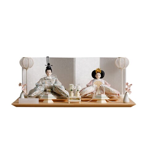 雛人形 おしゃれ モダン 親王飾り インテリア お雛様 雛 高級 PREFER CLASSIC ひな人形 [檜台 白屏風 平飾り お道具付 菱餅三方 雪洞 枝桜ピンク 人形極小サイズ 選べる正絹衣裳4種類 碧櫻 采禾 美文 瑚透] 【采禾】
