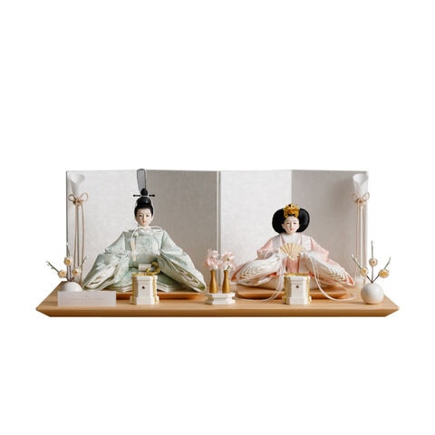雛人形 おしゃれ モダン 親王飾り インテリア お雛様 雛 高級 PREFER CLASSIC ひな人形 [檜台 白屏風 平飾り お道具付 貝桶三方 油灯 白梅 人形極小サイズ 選べる正絹衣裳4種類 碧櫻 采禾 美文 瑚透] 【碧櫻】