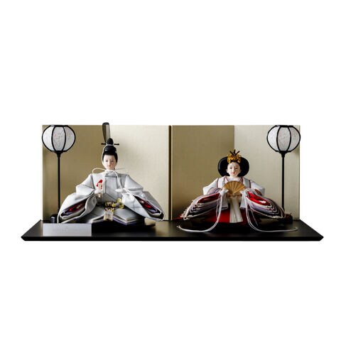 雛人形 おしゃれ モダン 親王飾り インテリア お雛様 雛 高級 PREFER CLASSIC ひな人形 [黒塗台 金屏風 平飾り 人形極小サイズ 選べる正絹衣裳2種類 美文 瑚透 選べる灯り2種 油灯 雪洞] 【美文 雪洞】