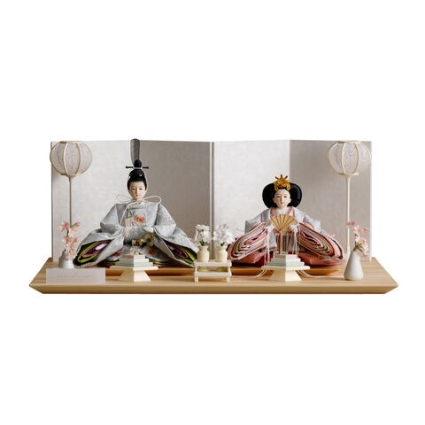 雛人形 おしゃれ モダン 親王飾り インテリア お雛様 雛 高級 PREFER CLASSIC ひな人形 [檜台 白屏風 お道具付 菱餅三方 雪洞 枝桜ピンク 人形極小サイズ 選べる衣裳3種類 帆南 白詩 篠桜] 【篠桜】