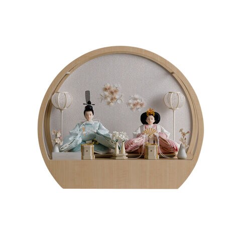 雛人形 おしゃれ モダン 親王飾り インテリア お雛様 雛 高級 PREFER CLASSIC ひな人形 [丸型ケース飾り お道具付 貝桶三方 雪洞 枝桜白 人形極小サイズ 選べる衣裳3種類 帆南 白詩 篠桜] 【白詩】