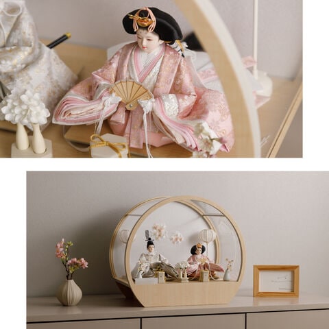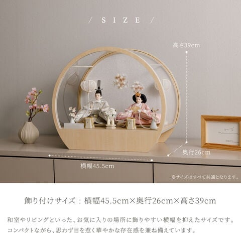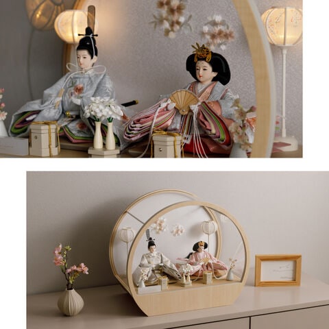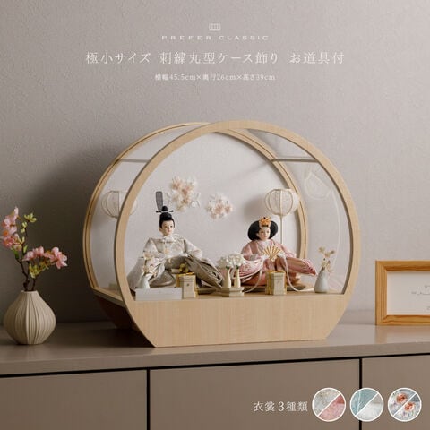 雛人形 おしゃれ モダン 親王飾り インテリア お雛様 雛 高級 PREFER CLASSIC ひな人形 [丸型ケース飾り お道具付 貝桶三方 雪洞 枝桜白 人形極小サイズ 選べる衣裳3種類 帆南 白詩 篠桜] 【篠桜】