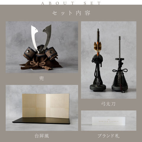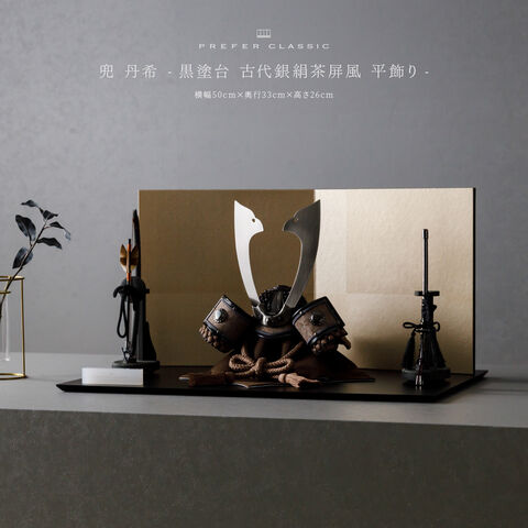 五月人形 おしゃれ 兜飾り 兜 モダン インテリア 高級 5月人形 PREFER CLASSIC 五月人形[黒塗台 古代銀絹茶屏風 平飾り 弓太刀 KIYO 丹希] 長鍬形