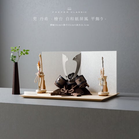 五月人形 おしゃれ 兜飾り 兜 モダン インテリア 高級 5月人形 PREFER CLASSIC 五月人形[檜台 白和紙屏風 平飾り 弓太刀 白珠8号 丹希] 長鍬形