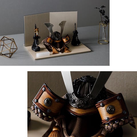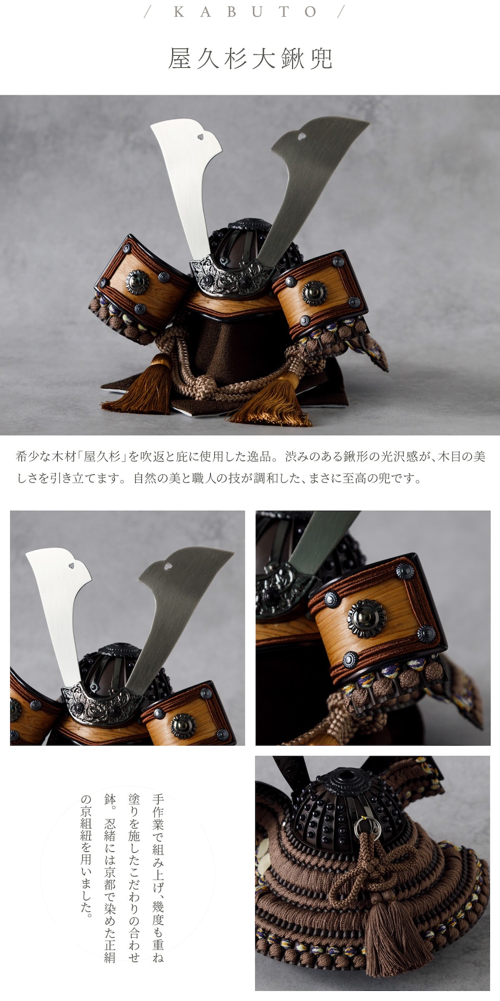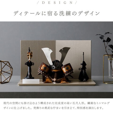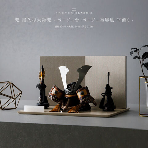 五月人形 おしゃれ 兜飾り 兜 モダン インテリア 高級 5月人形 PREFER CLASSIC 五月人形[ベージュ台 ベージュ布屏風 平飾り 弓太刀 KIYO5号 屋久杉大鍬兜] オプション ケース 【ケースなし】