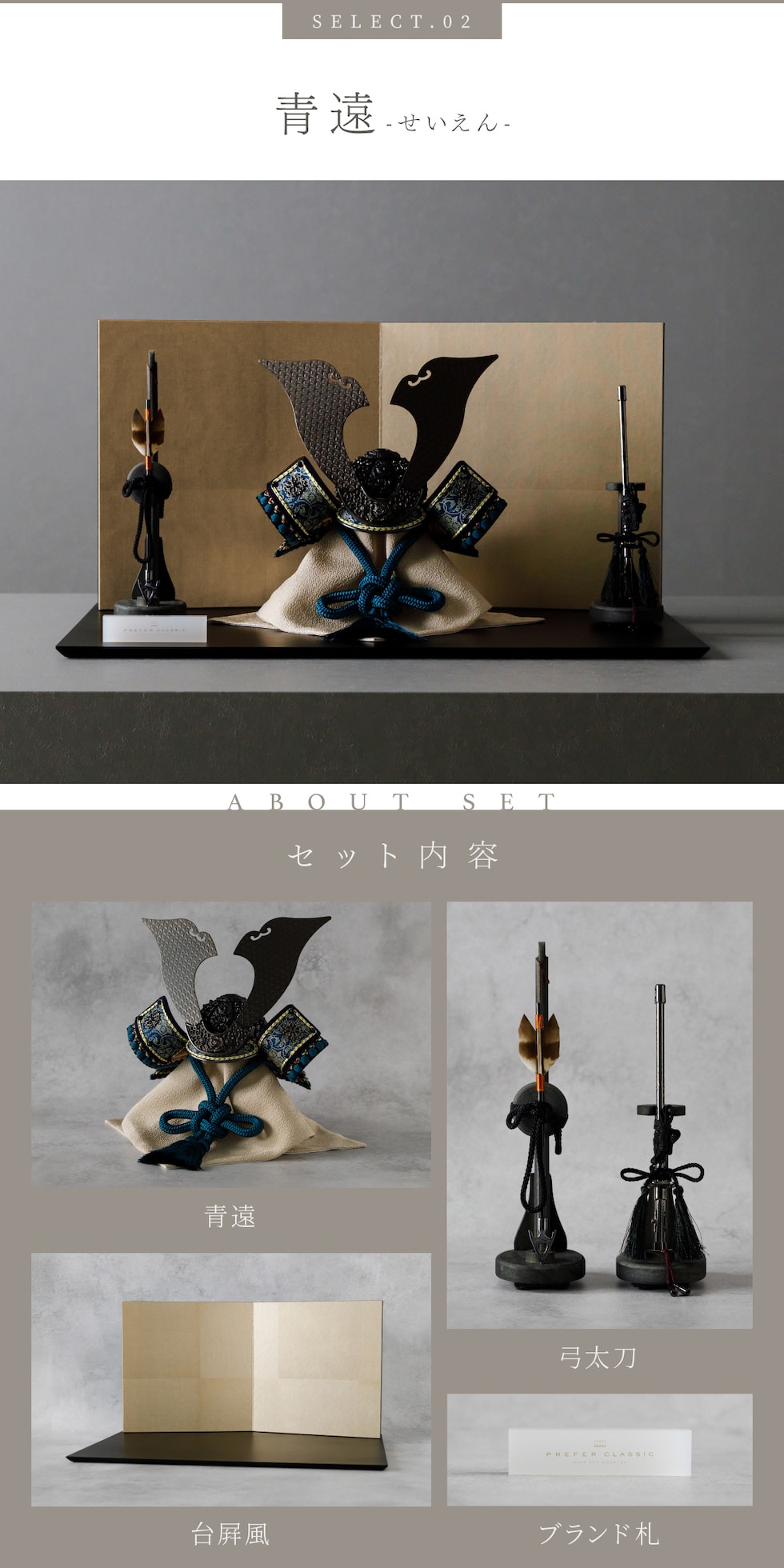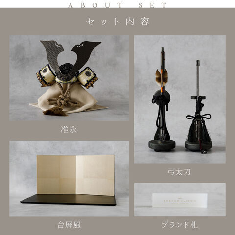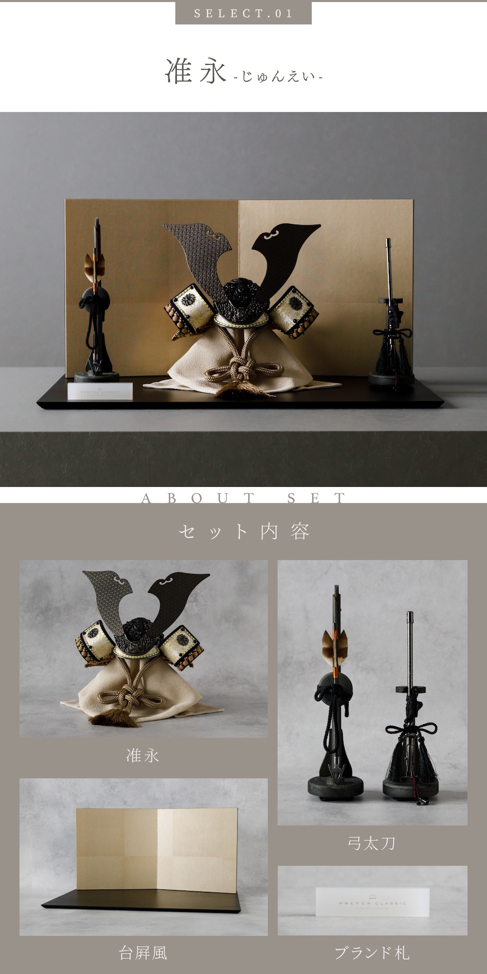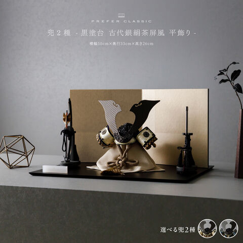 五月人形 おしゃれ 兜飾り 兜 モダン インテリア 高級 5月人形 PREFER CLASSIC 五月人形[黒塗台 古代銀絹茶屏風 平飾り 弓太刀 KIYO7号 准永 青遠] 大鍬形 【准永】
