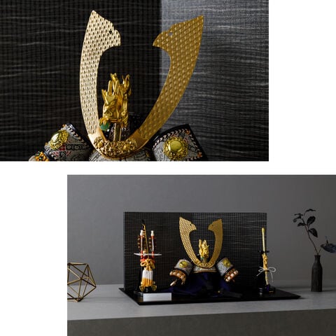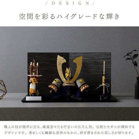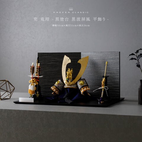 五月人形 おしゃれ 兜飾り 兜 モダン インテリア 高級 5月人形 PREFER CLASSIC 五月人形[黒塗台 黒波屏風 平飾り 弓太刀 KEI 竜翔] 長鍬形