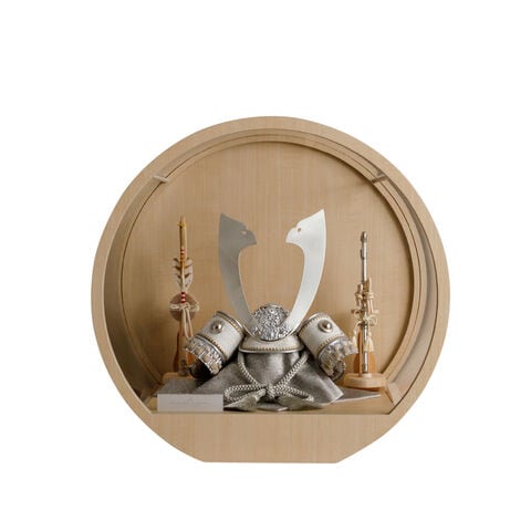 五月人形 ケース飾り おしゃれ 兜飾り 兜 モダン インテリア 高級 5月人形 PREFER CLASSIC 五月人形[木目調丸型ケース飾り 弓太刀 白珠8号 天輝 律輝] 長鍬形 【律輝】