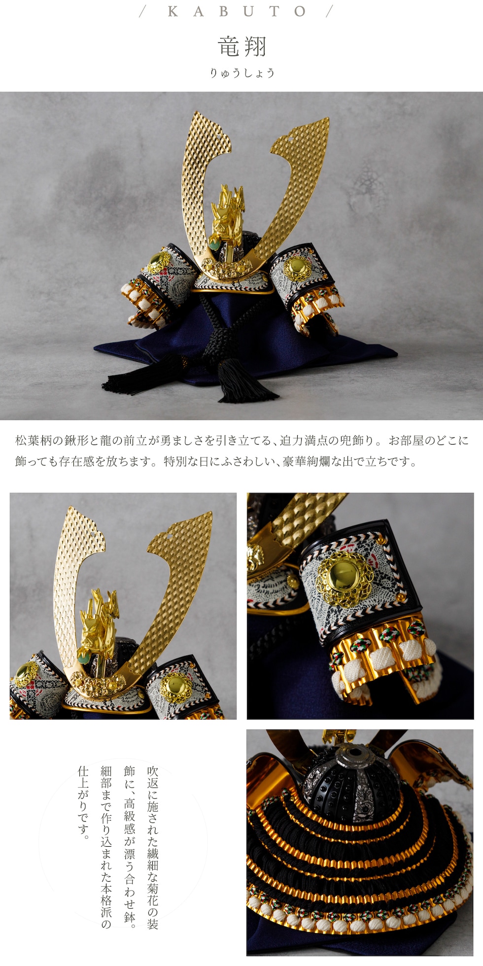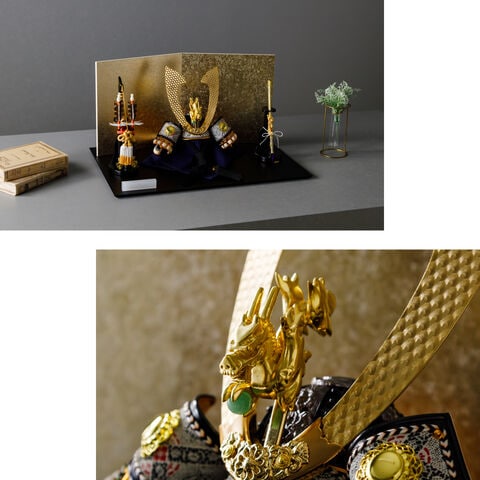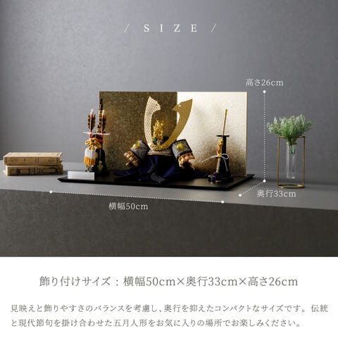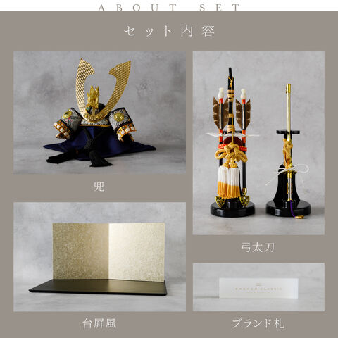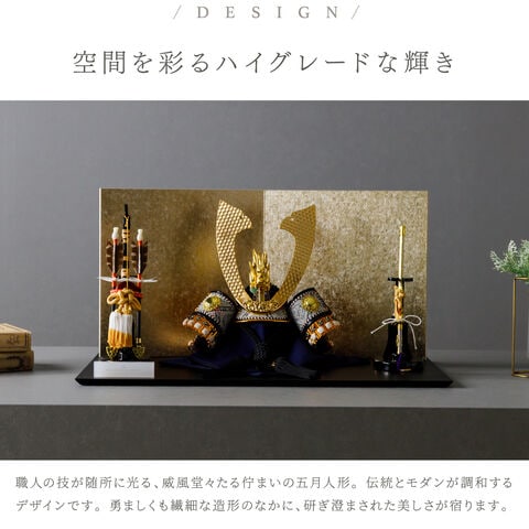 五月人形 おしゃれ 兜飾り 兜 モダン インテリア 高級 5月人形 PREFER CLASSIC 五月人形[黒塗台 小箔金屏風 平飾り 弓太刀 KEI 竜翔] 長鍬形