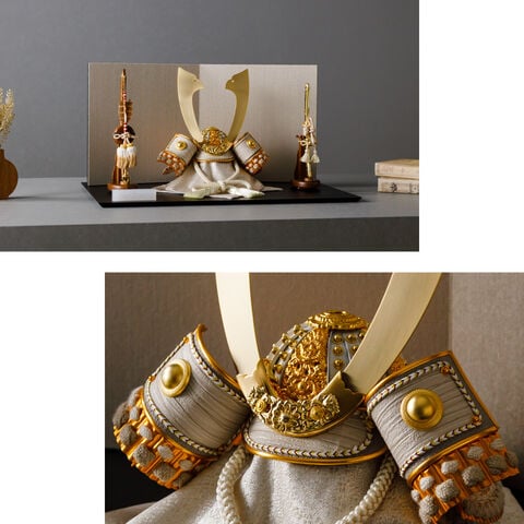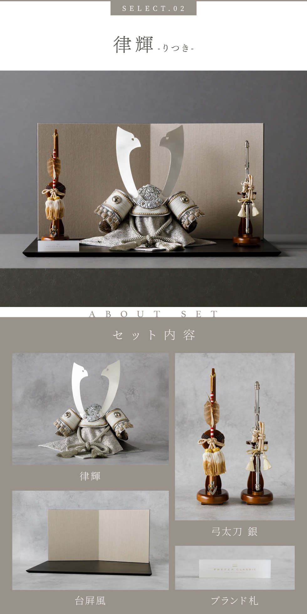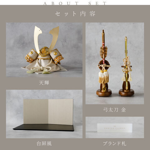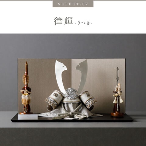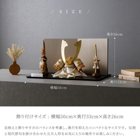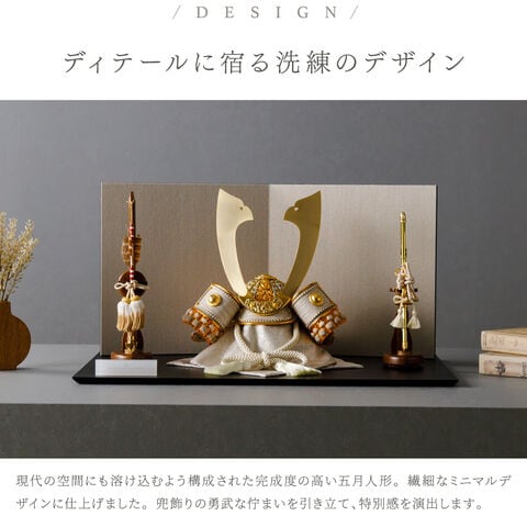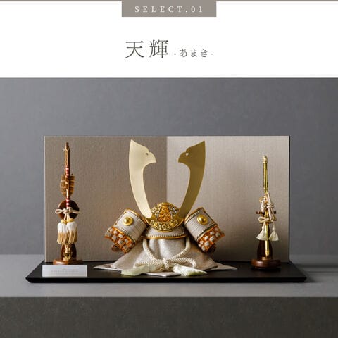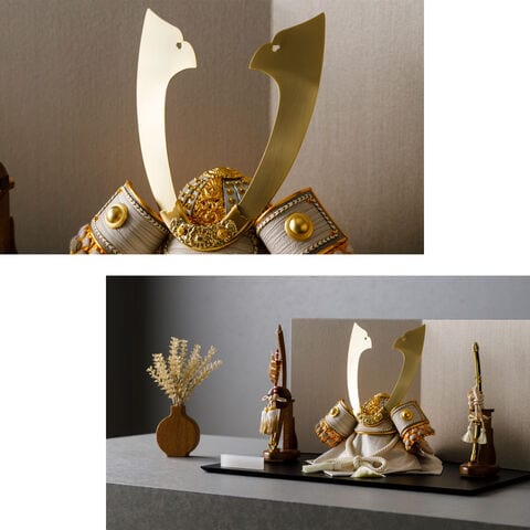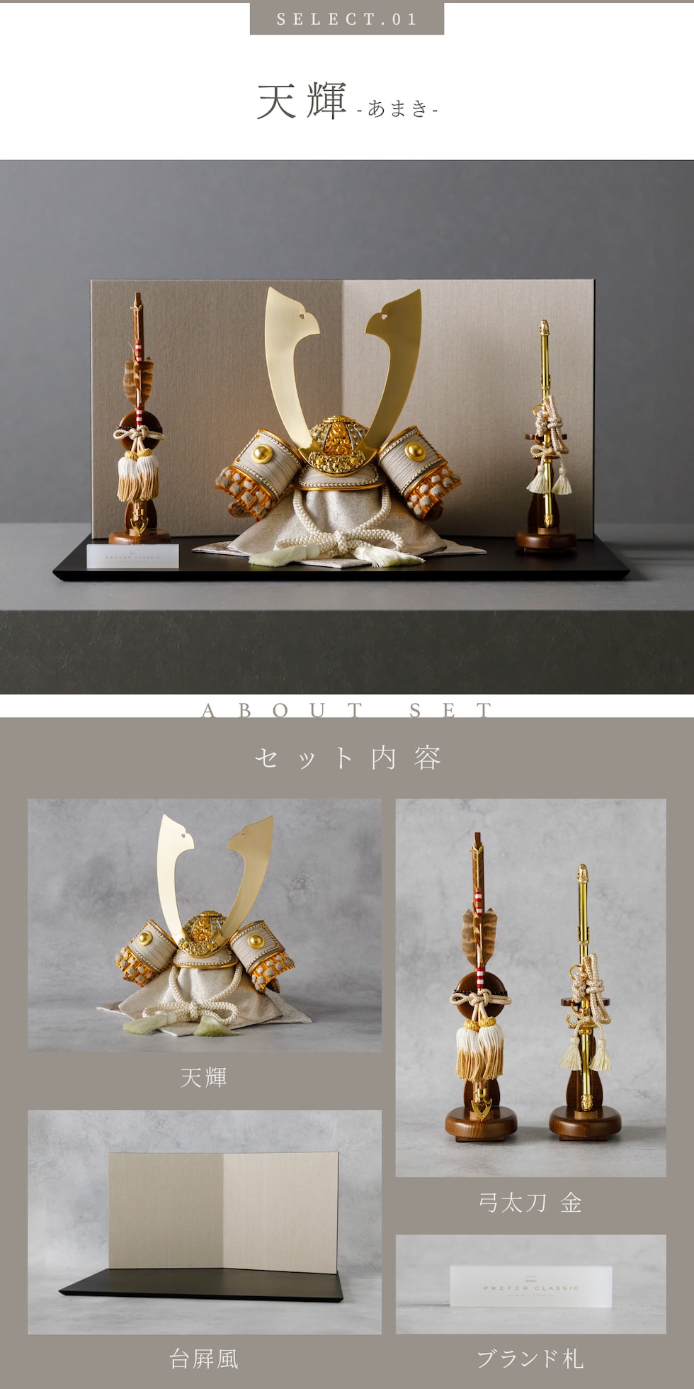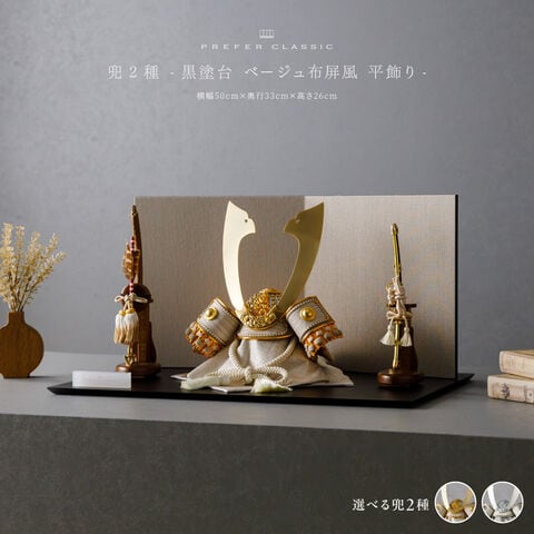 五月人形 おしゃれ 兜飾り 兜 モダン インテリア 高級 5月人形 PREFER CLASSIC 五月人形[黒塗台 ベージュ布屏風 平飾り 弓太刀 大和 天輝 律輝] 長鍬形 【天輝】