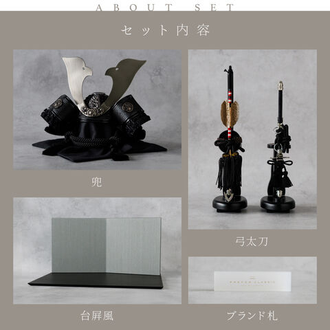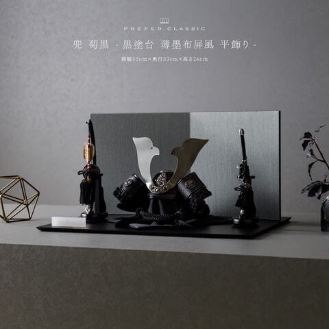 五月人形 おしゃれ 兜飾り 兜 モダン インテリア 高級 5月人形 PREFER CLASSIC 五月人形[黒塗台 薄墨屏風 平飾り 弓太刀 黒龍8号 萄黒] 大鍬形