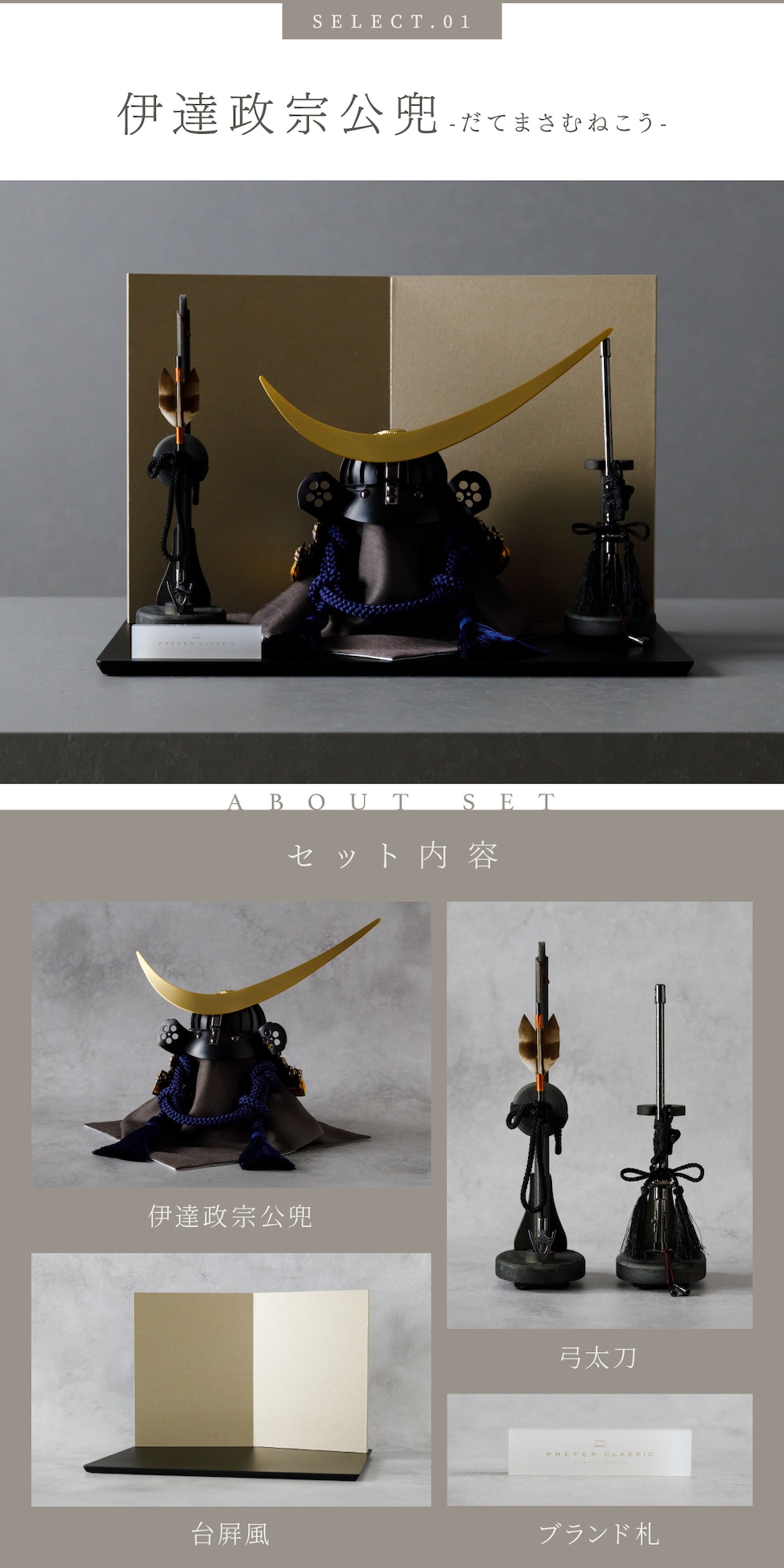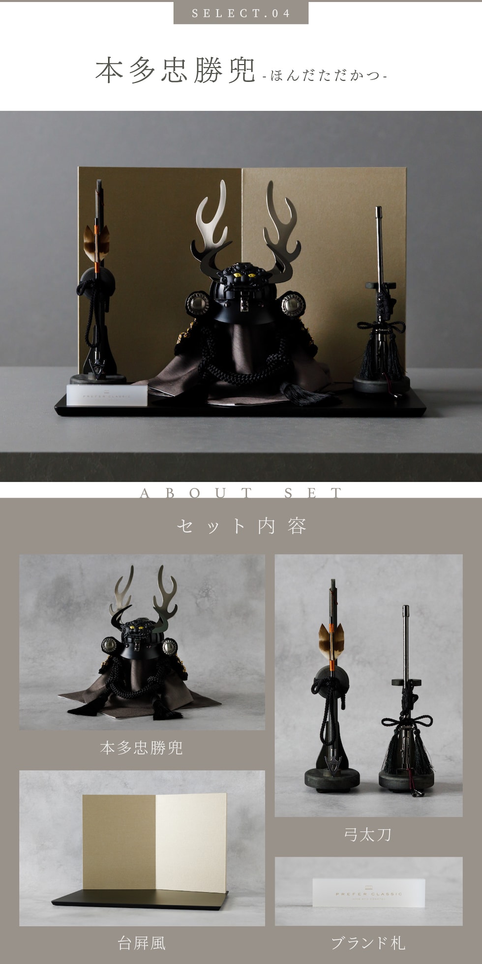 五月人形 コンパクト おしゃれ 兜飾り 兜 モダン インテリア 高級 5月人形 PREFER CLASSIC 五月人形[黒塗台 金屏風 平飾り 弓太刀 KIYO7号 伊達政宗公兜 上杉謙信公兜 徳川家康公兜 本多忠勝兜] 【本多忠勝兜】