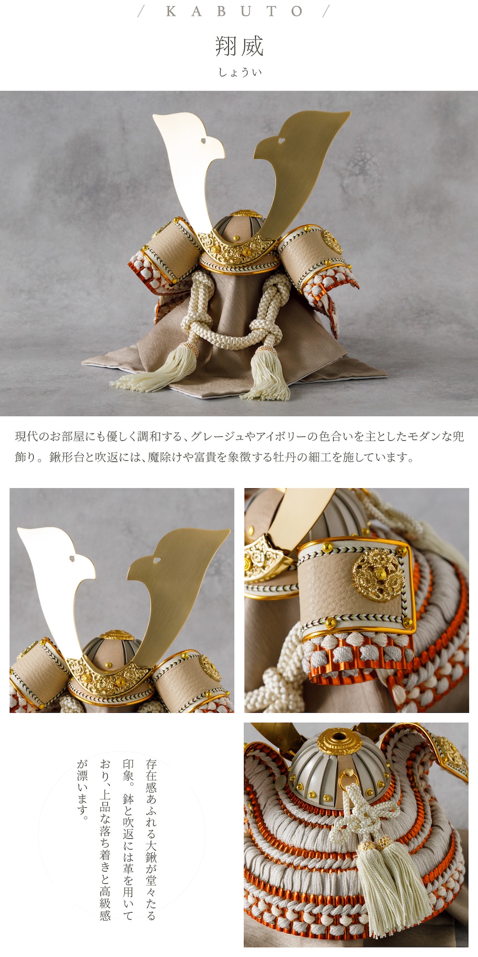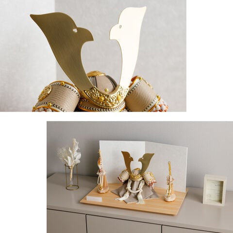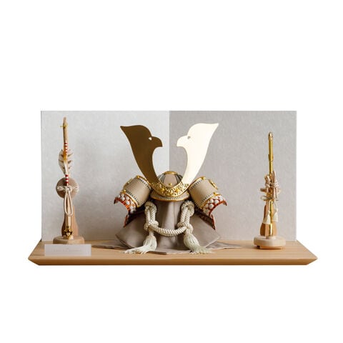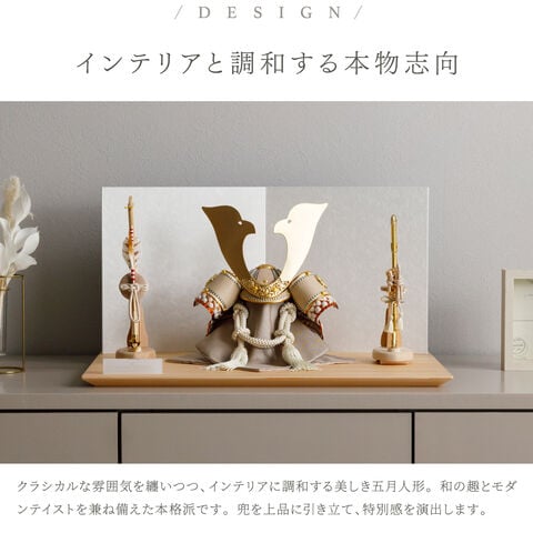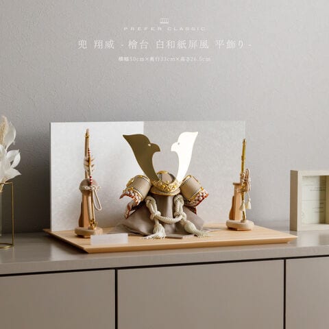 五月人形 おしゃれ 兜飾り 兜 モダン インテリア 高級 5月人形 PREFER CLASSIC 五月人形[檜台 白和紙屏風 平飾り 弓太刀 白珠8号 翔威] 大鍬形