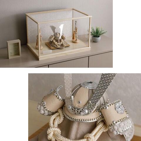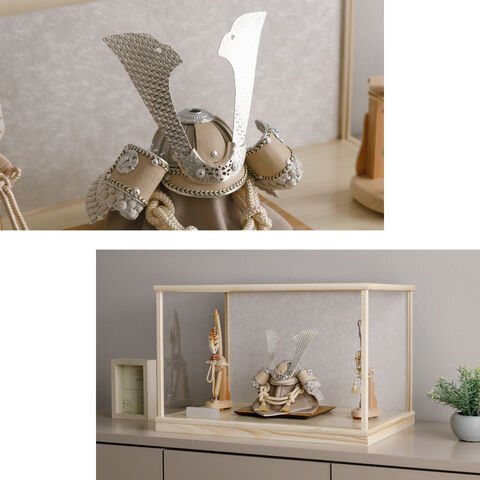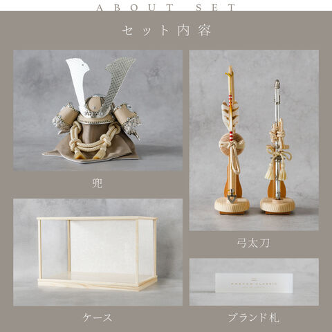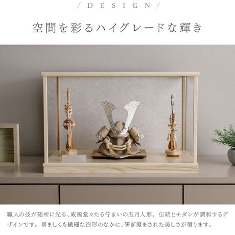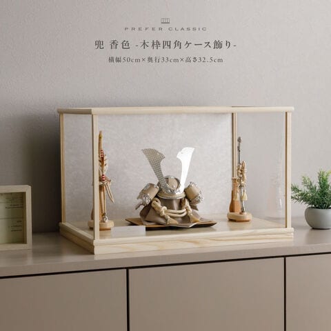 五月人形 ケース飾り おしゃれ 兜飾り 兜 モダン インテリア 高級 5月人形 PREFER CLASSIC 五月人形[木枠四角ケース飾り 弓太刀 白珠8号 香色] 中鍬形