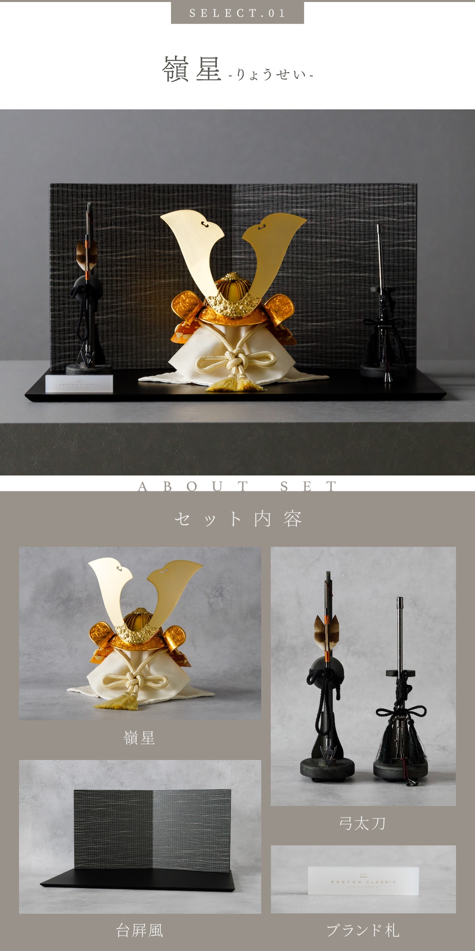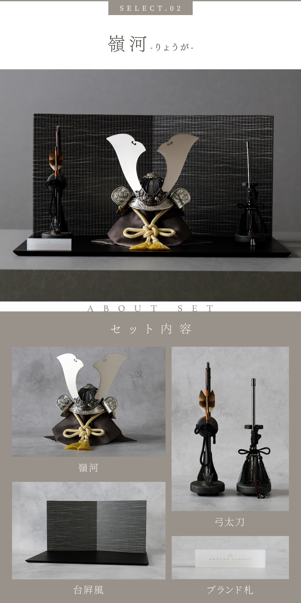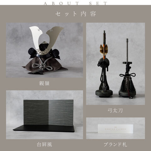 五月人形 おしゃれ 兜飾り 兜 モダン インテリア 高級 5月人形 PREFER CLASSIC 五月人形[黒塗台 黒波屏風 平飾り 弓太刀 KIYO7号 嶺星 嶺河 和嶺] 大鍬形 【嶺星】