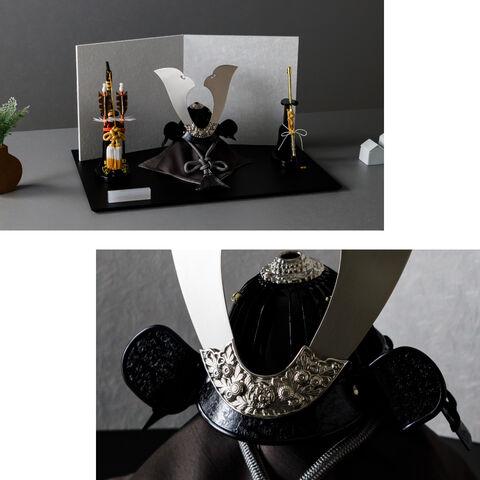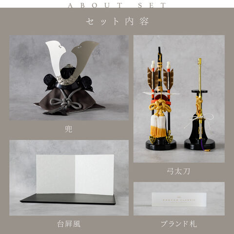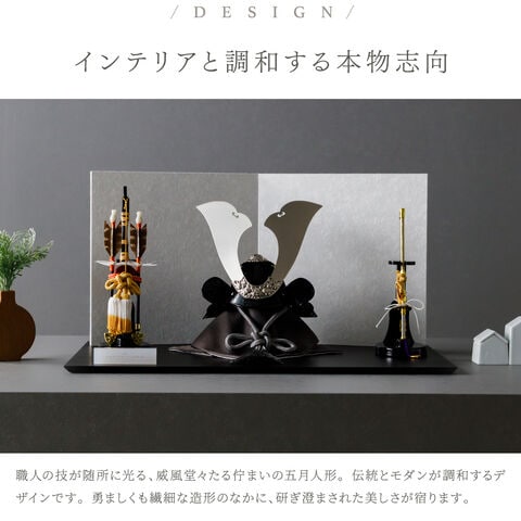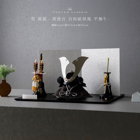 五月人形 おしゃれ 兜飾り 兜 モダン インテリア 高級 5月人形 PREFER CLASSIC 五月人形[黒塗台 白和紙屏風 平飾り 弓太刀 KEI 親嶺] 大鍬形